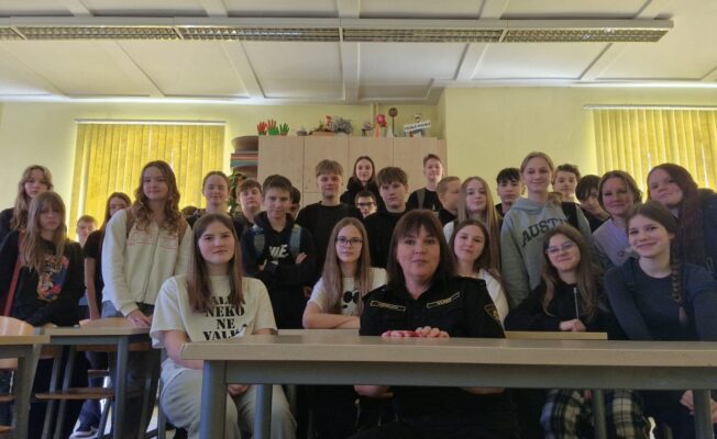 7. klašu tikšanās ar VUGD Vidzemes reģiona pārvaldes Ugunsdrošības uzraudzības un civilās aizsardzības nodaļas inspektori