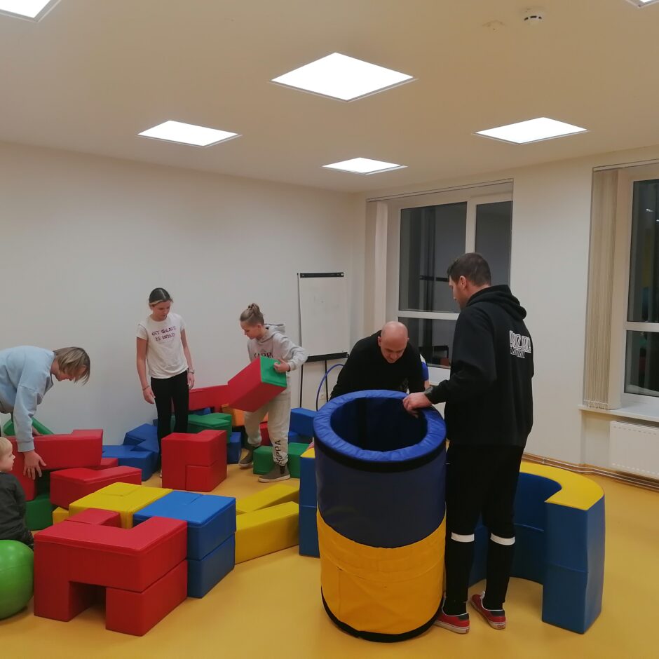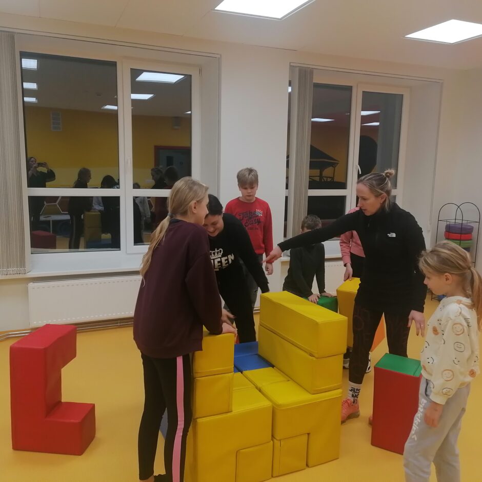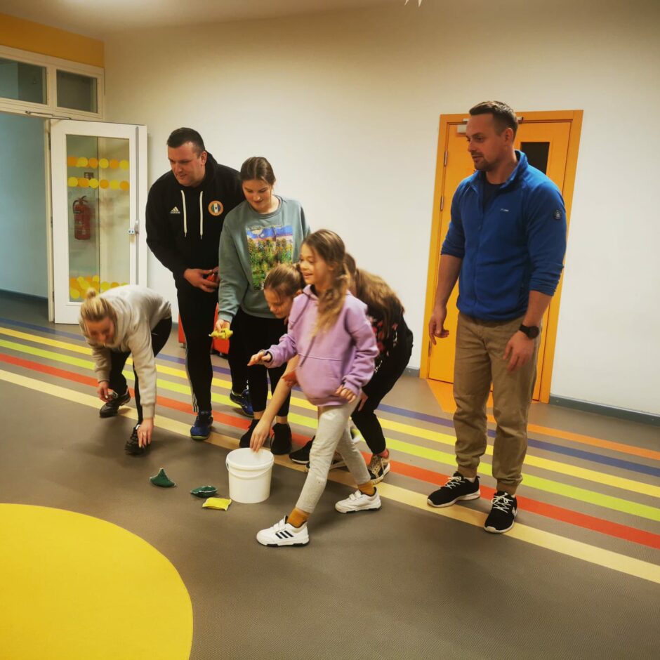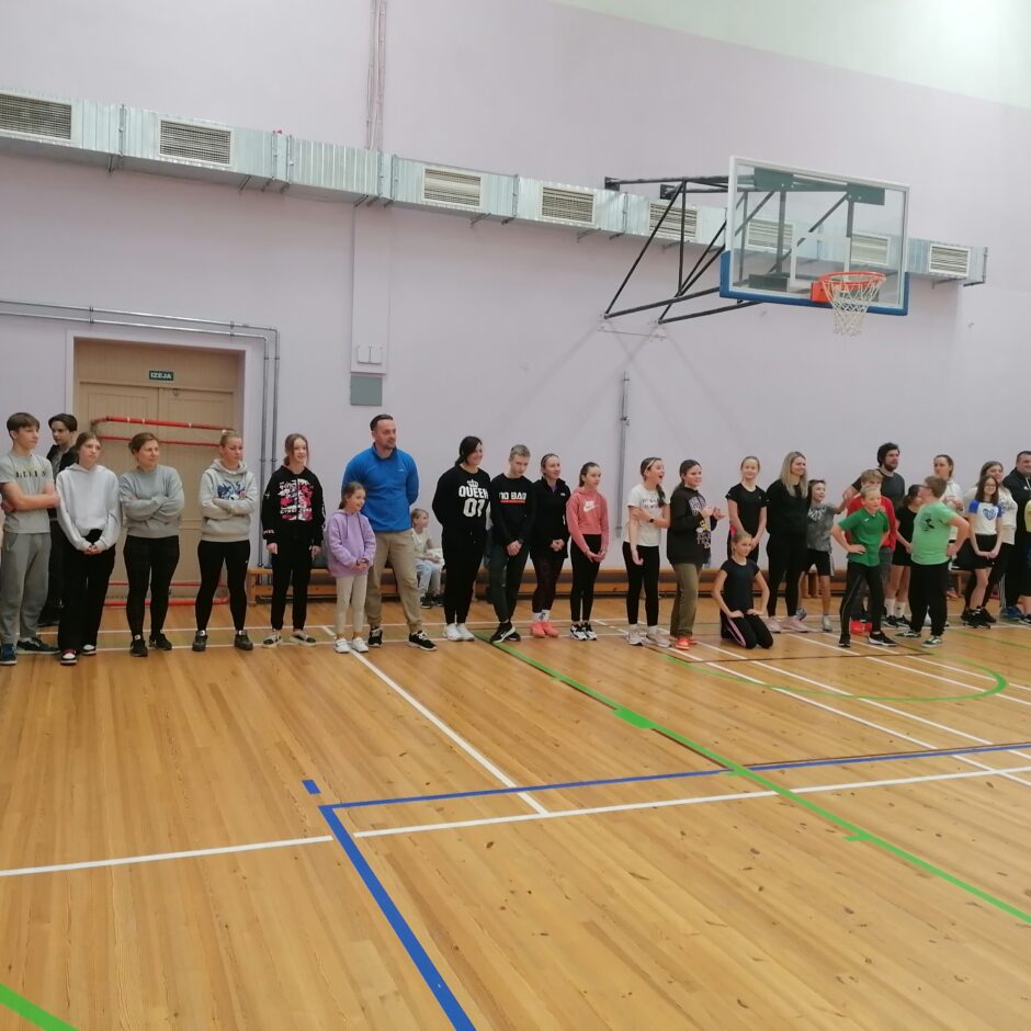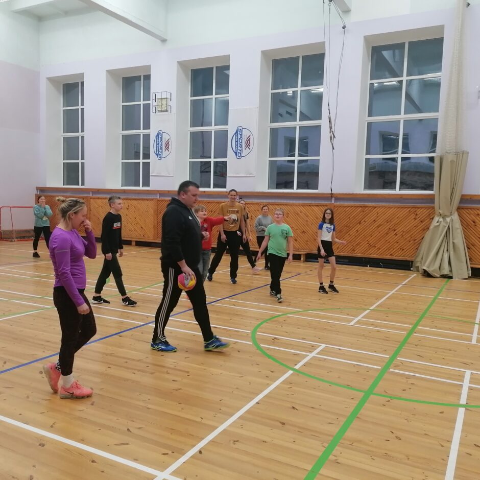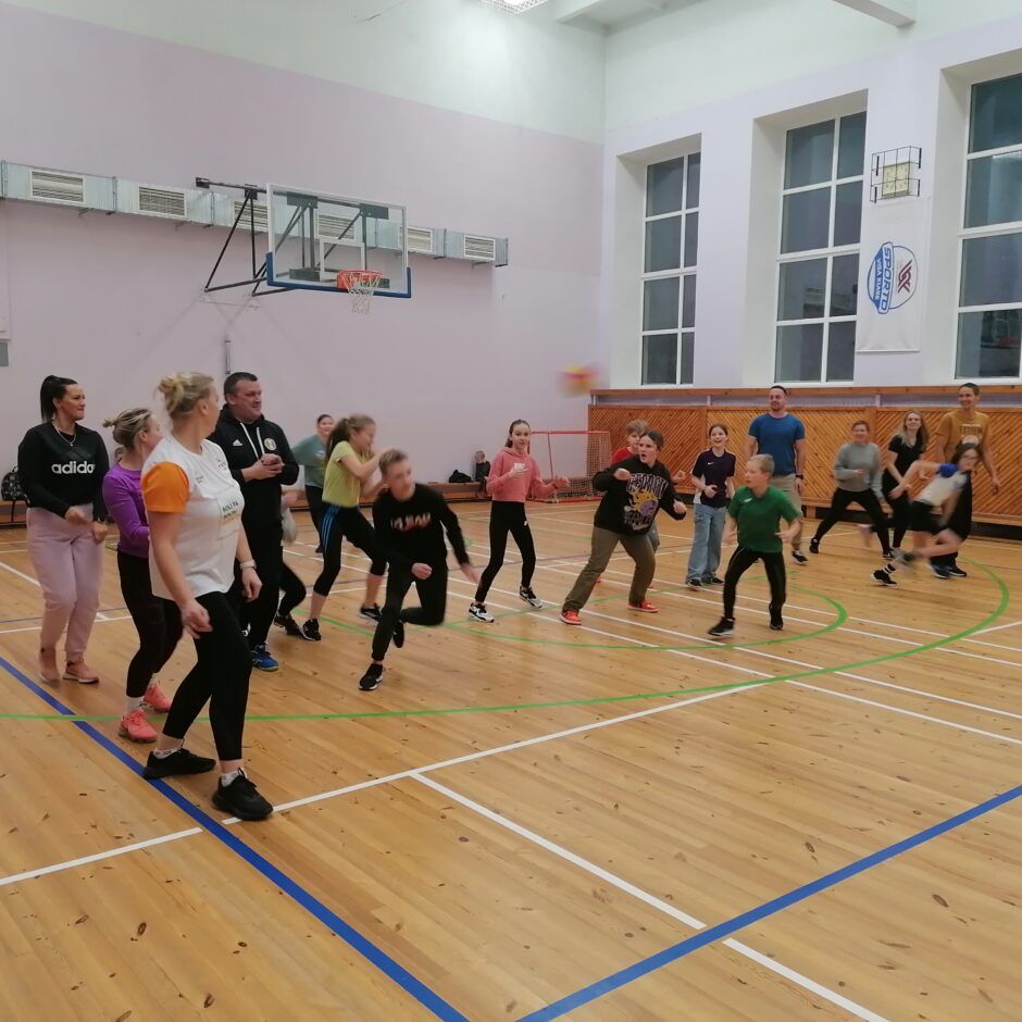 Kopā izgājām dažādas atraktīvas uzdevumu stacijas un kulminācijā kopīgs tautas bumbas mačs.