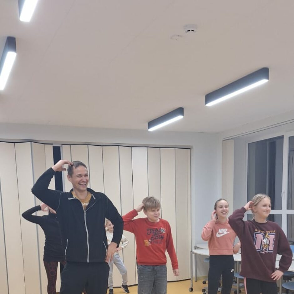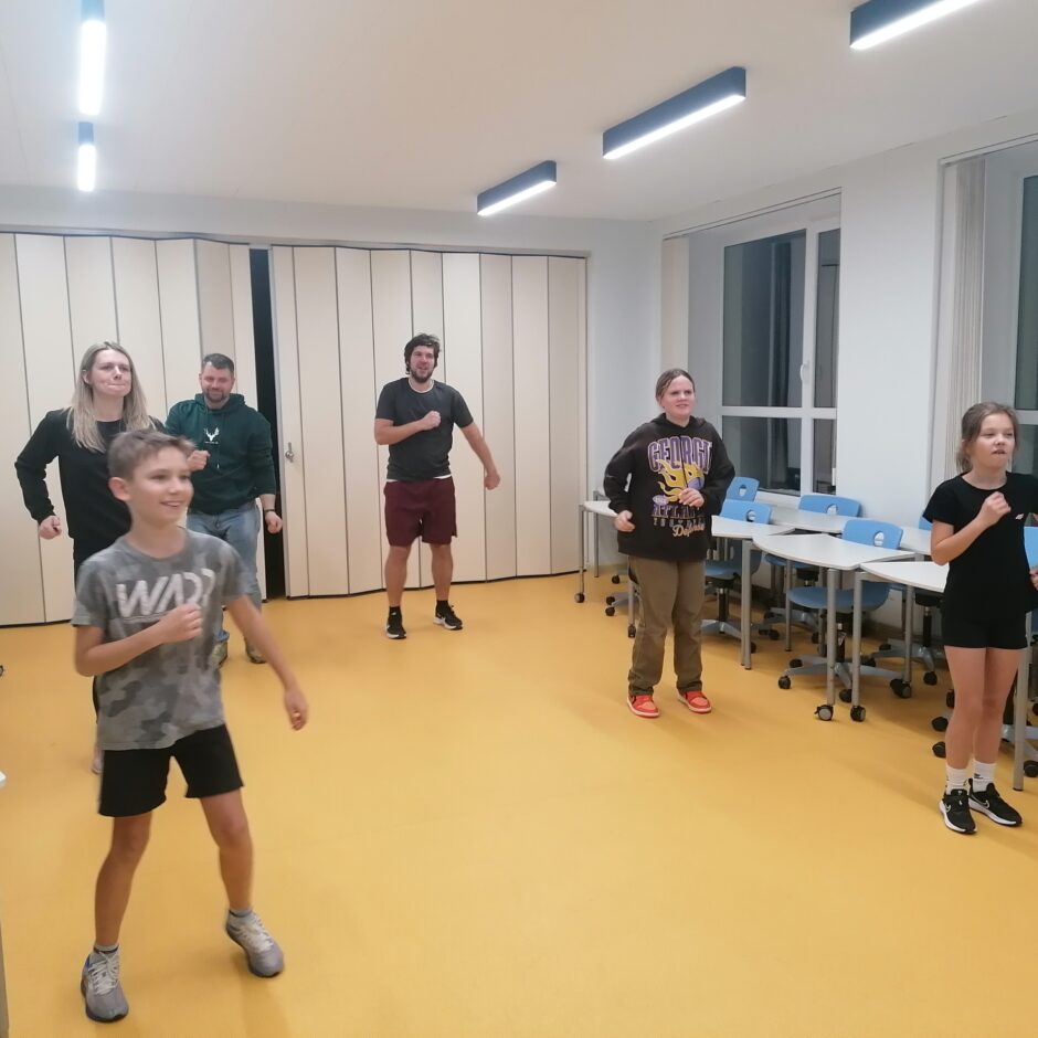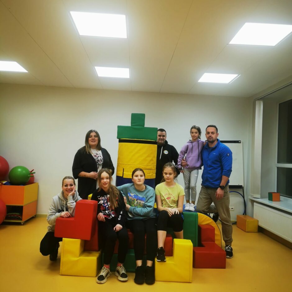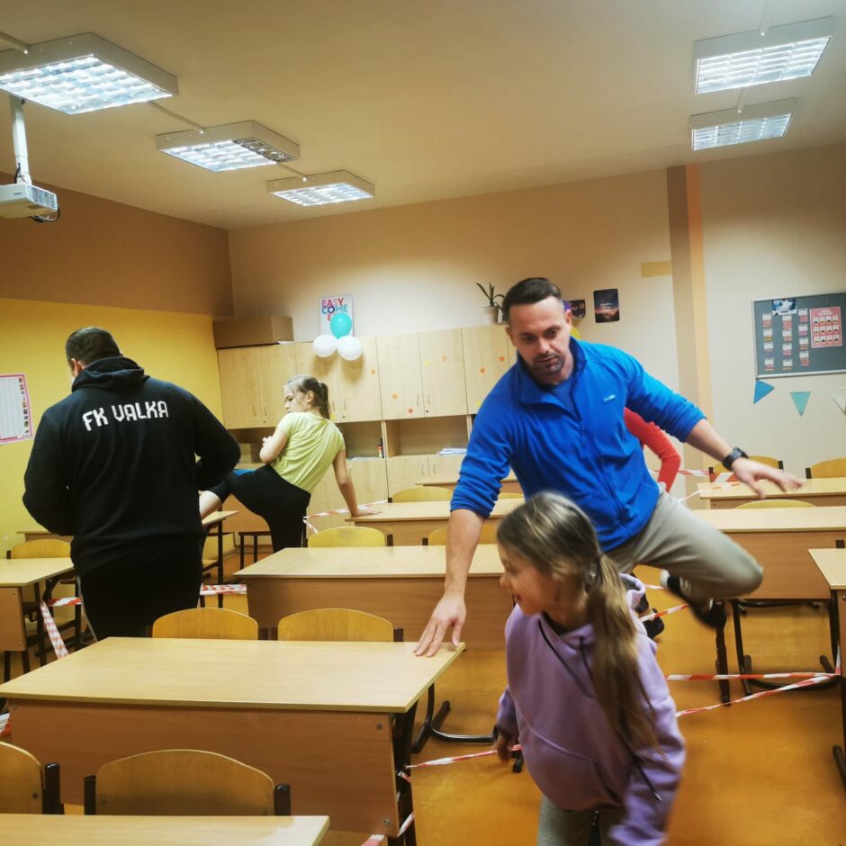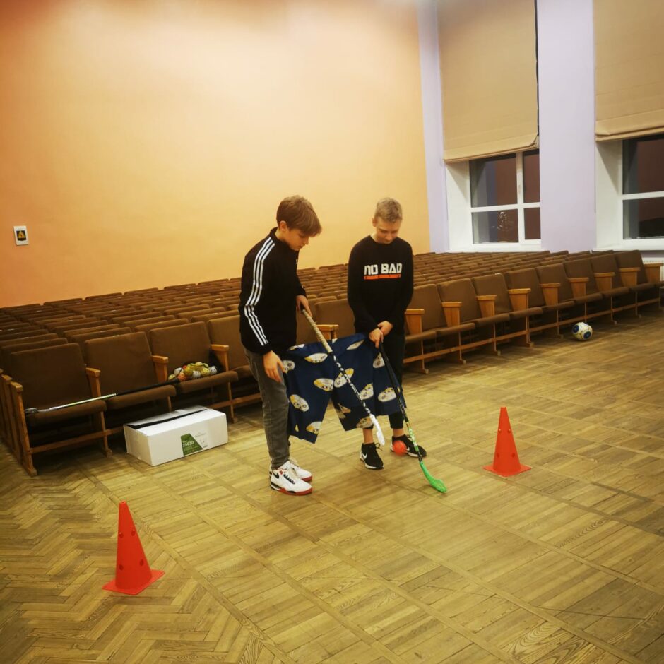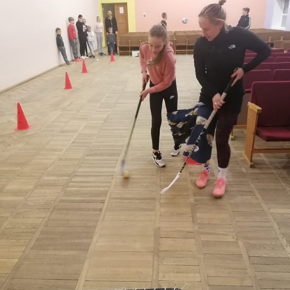 Kopā izgājām dažādas atraktīvas uzdevumu stacijas un kulminācijā kopīgs tautas bumbas mačs.