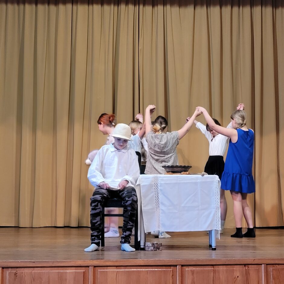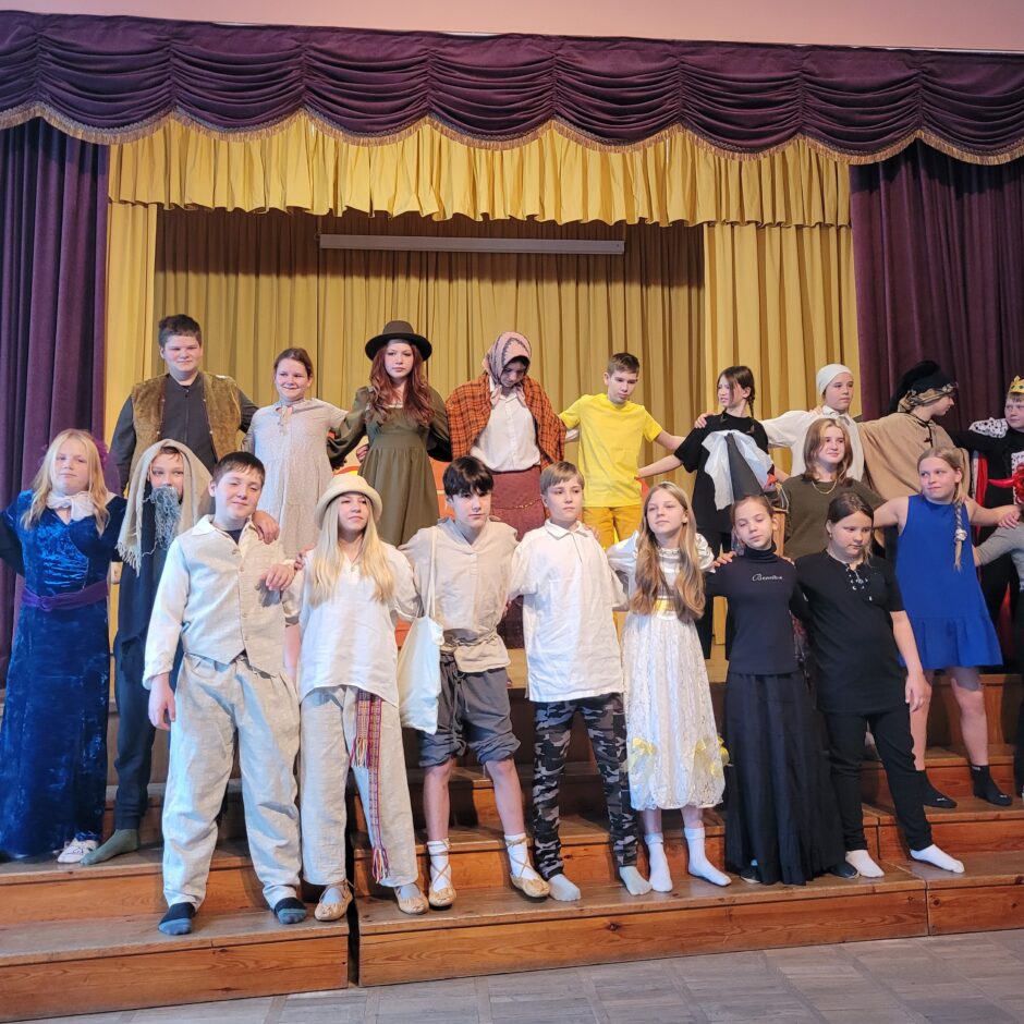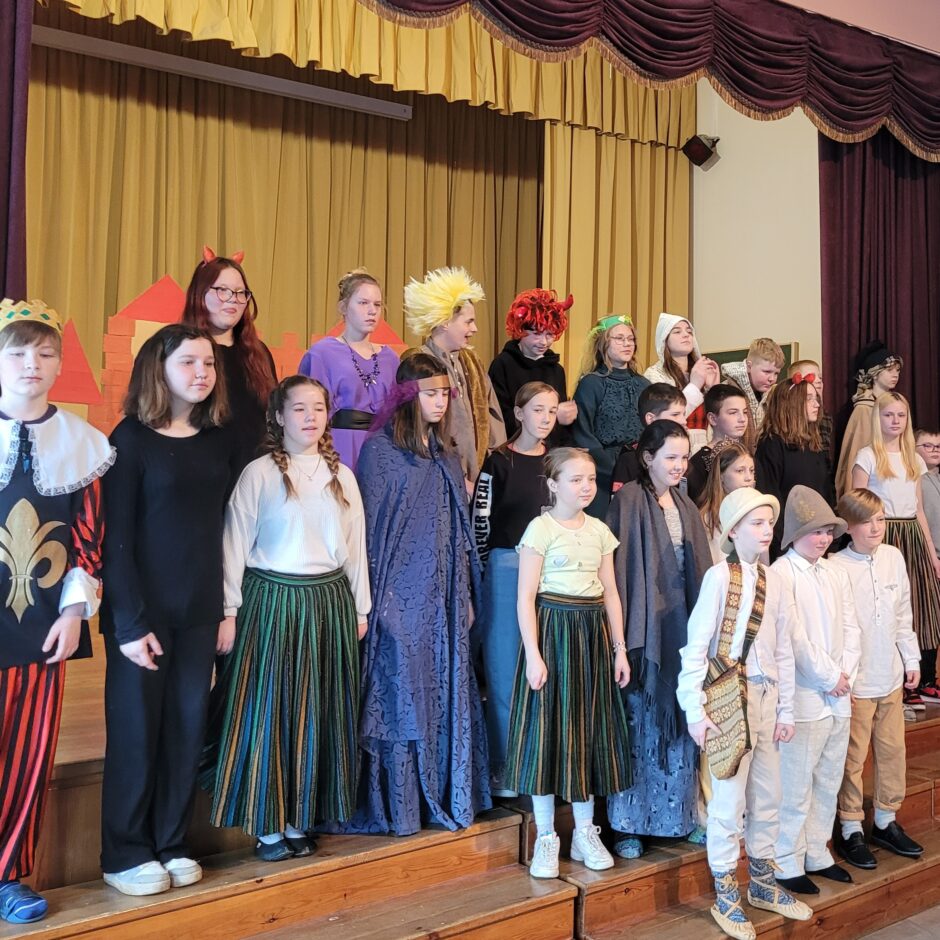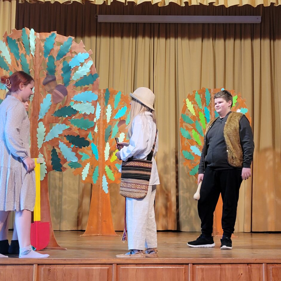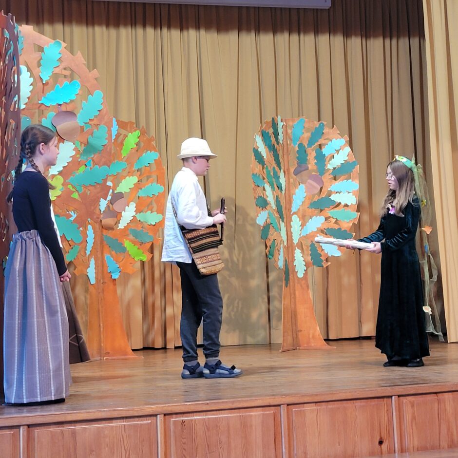 5. klašu skolēnu pārbaudes darbs – izrāde “Sprīdītis”. Pie izrādes strādā dažādās mācību stundās: teātra māksla – teksta apguve un aktiermeistarība, literatūra – teksta analīze, dizains un tehnoloģijas – dekorāciju un rekvizītu gatavošana, mūzika – dziesmu un deju apguve. Paldies skolotājām L. Šnukai, A. Dālbergai, A. Melbārdei, D. Kuplai, I. Vītolai!