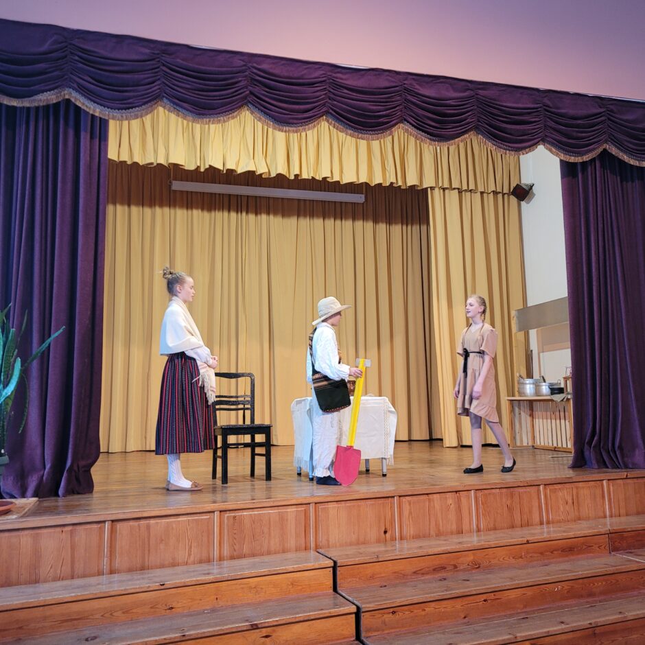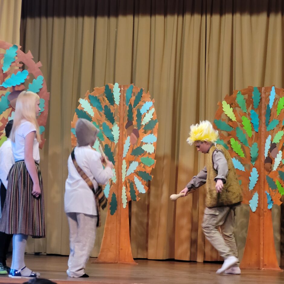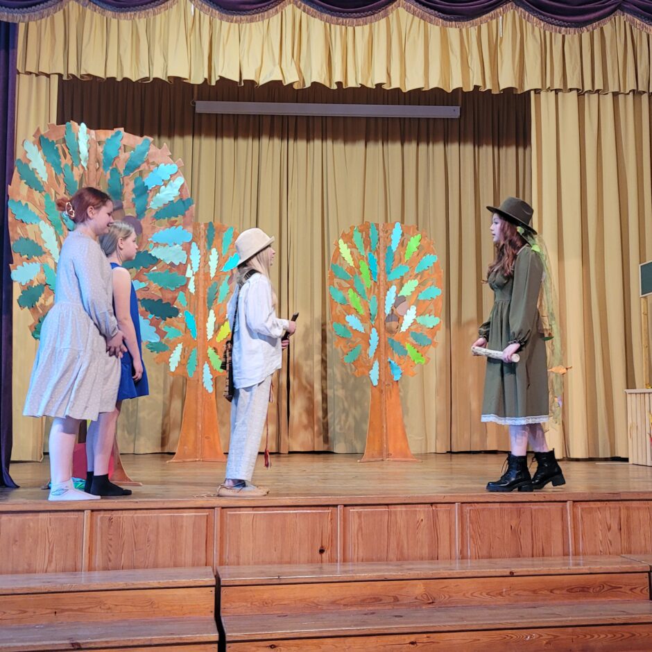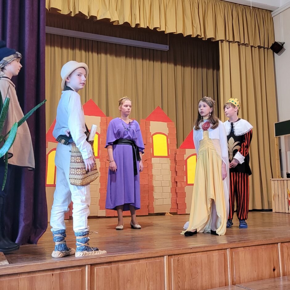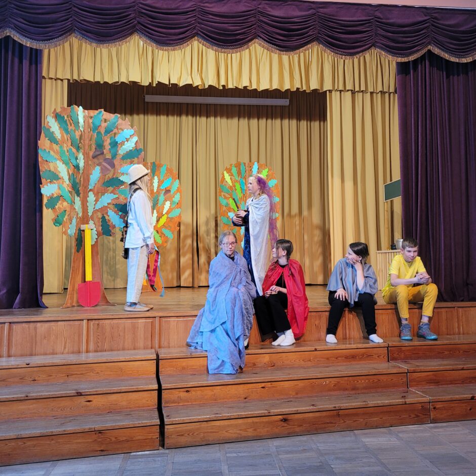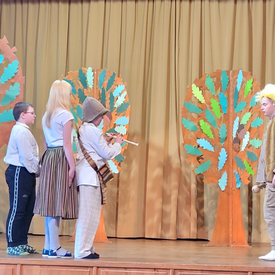 5. klašu skolēnu pārbaudes darbs – izrāde “Sprīdītis”. Pie izrādes strādā dažādās mācību stundās: teātra māksla – teksta apguve un aktiermeistarība, literatūra – teksta analīze, dizains un tehnoloģijas – dekorāciju un rekvizītu gatavošana, mūzika – dziesmu un deju apguve. Paldies skolotājām L. Šnukai, A. Dālbergai, A. Melbārdei, D. Kuplai, I. Vītolai!