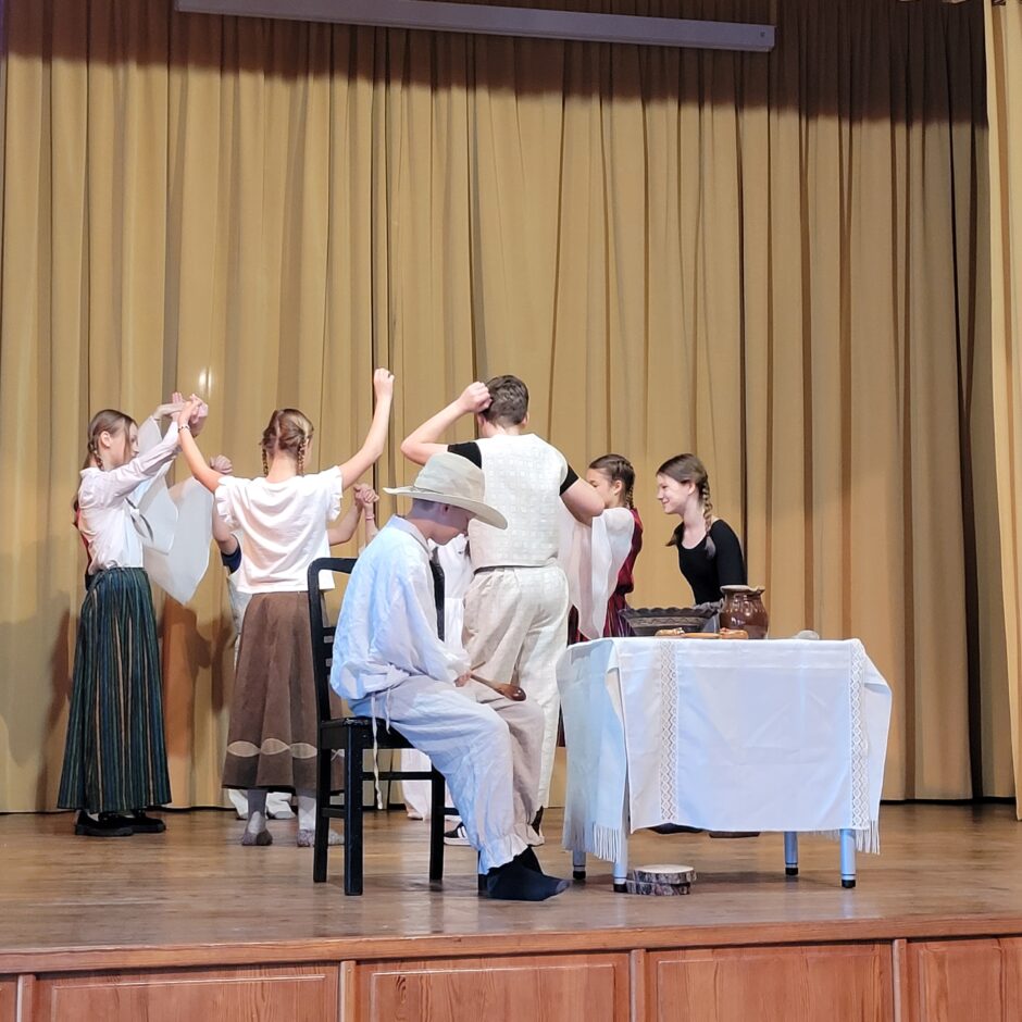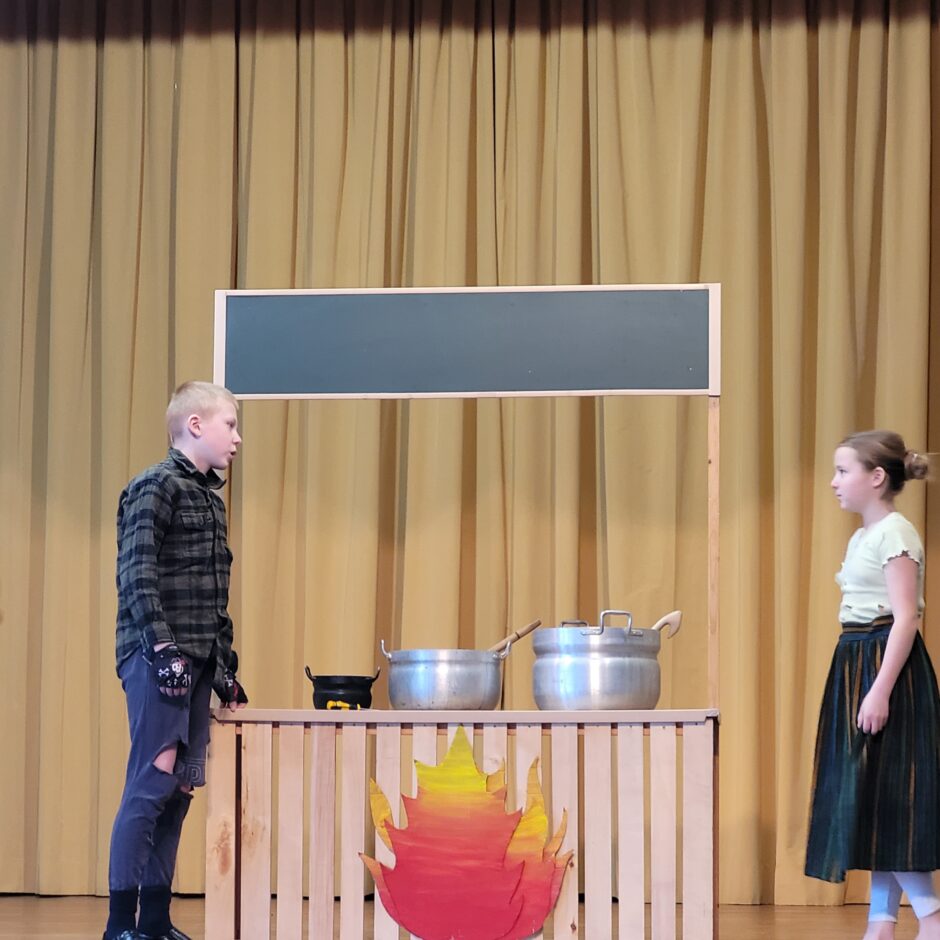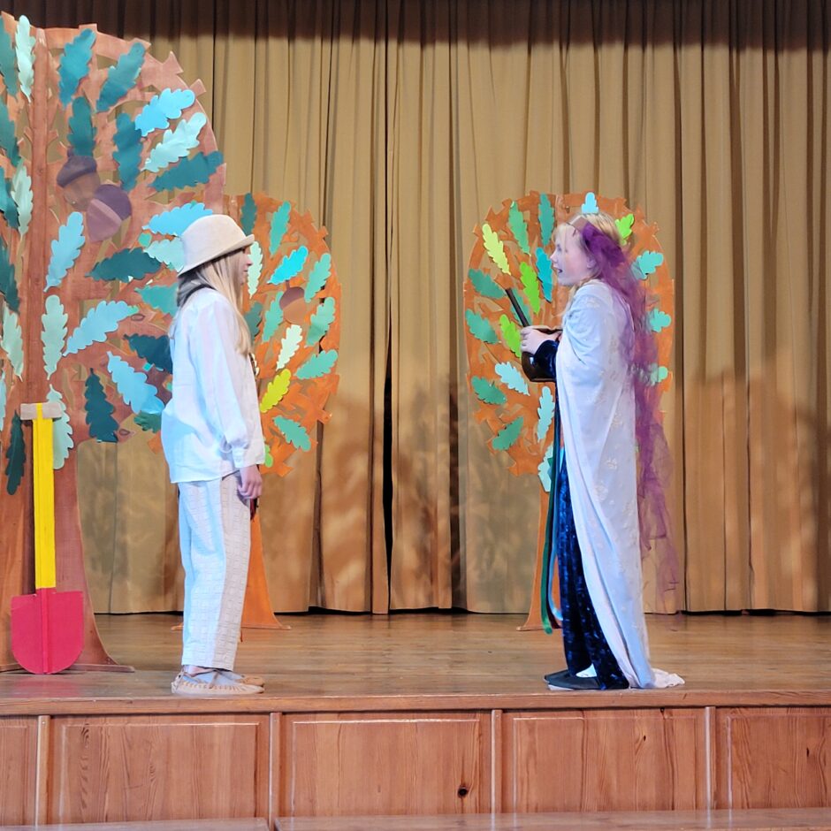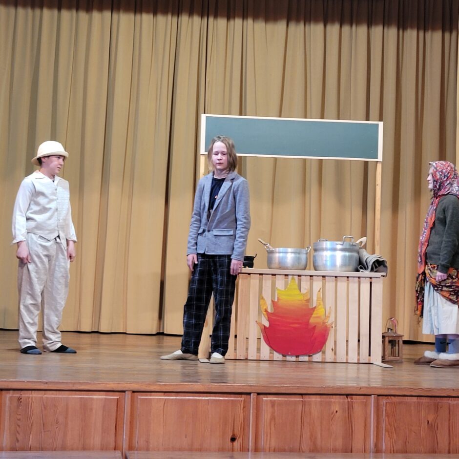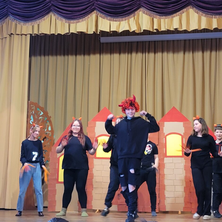 5. klašu skolēnu pārbaudes darbs – izrāde “Sprīdītis”. Pie izrādes strādā dažādās mācību stundās: teātra māksla – teksta apguve un aktiermeistarība, literatūra – teksta analīze, dizains un tehnoloģijas – dekorāciju un rekvizītu gatavošana, mūzika – dziesmu un deju apguve. Paldies skolotājām L. Šnukai, A. Dālbergai, A. Melbārdei, D. Kuplai, I. Vītolai!