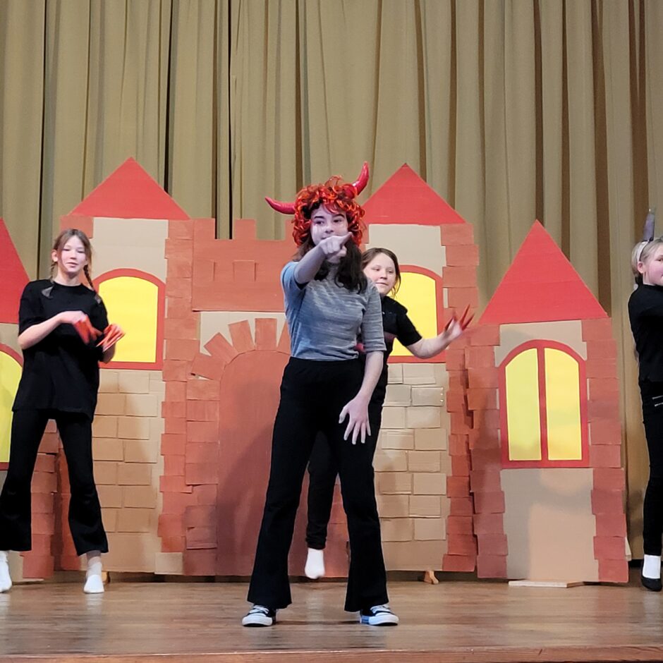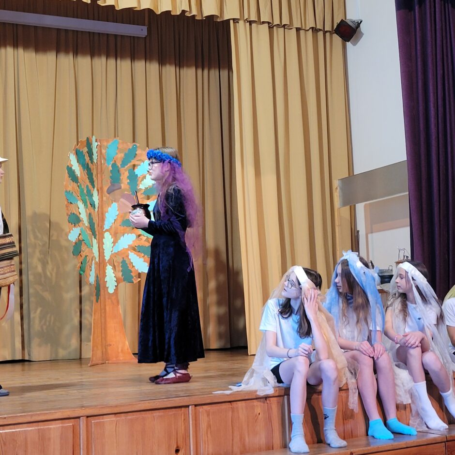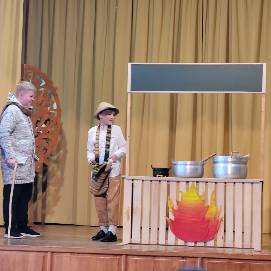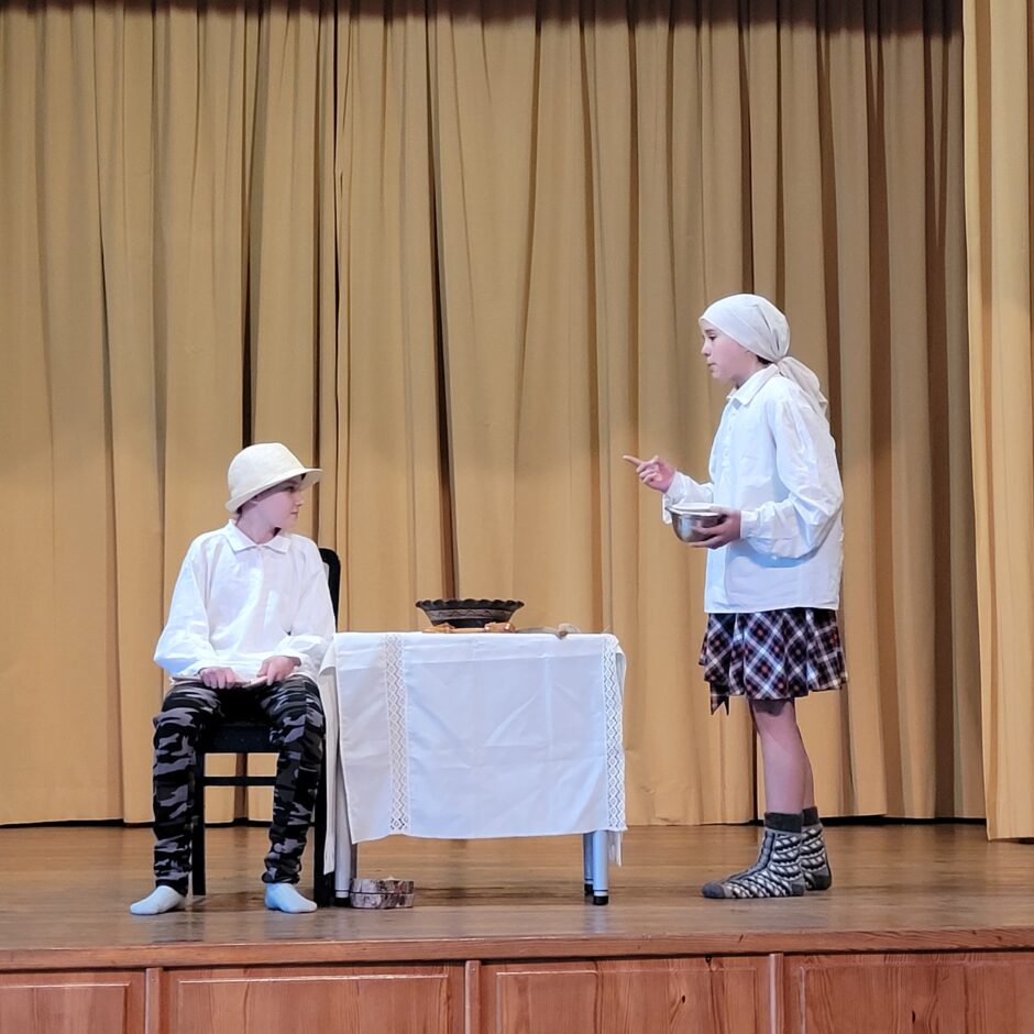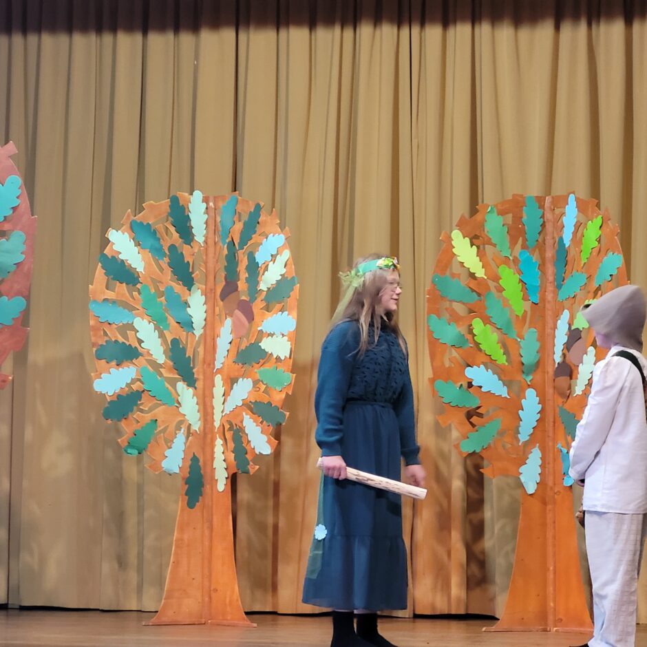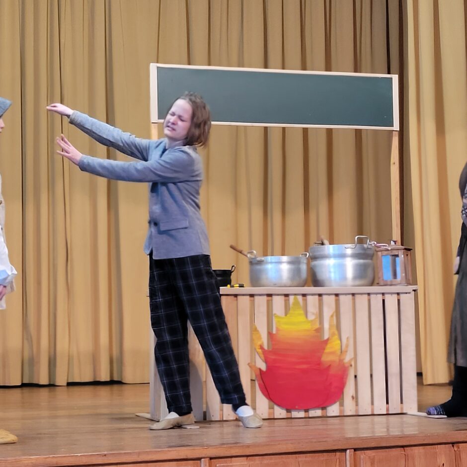 5. klašu skolēnu pārbaudes darbs – izrāde “Sprīdītis”. Pie izrādes strādā dažādās mācību stundās: teātra māksla – teksta apguve un aktiermeistarība, literatūra – teksta analīze, dizains un tehnoloģijas – dekorāciju un rekvizītu gatavošana, mūzika – dziesmu un deju apguve. Paldies skolotājām L. Šnukai, A. Dālbergai, A. Melbārdei, D. Kuplai, I. Vītolai!