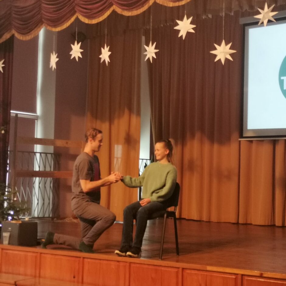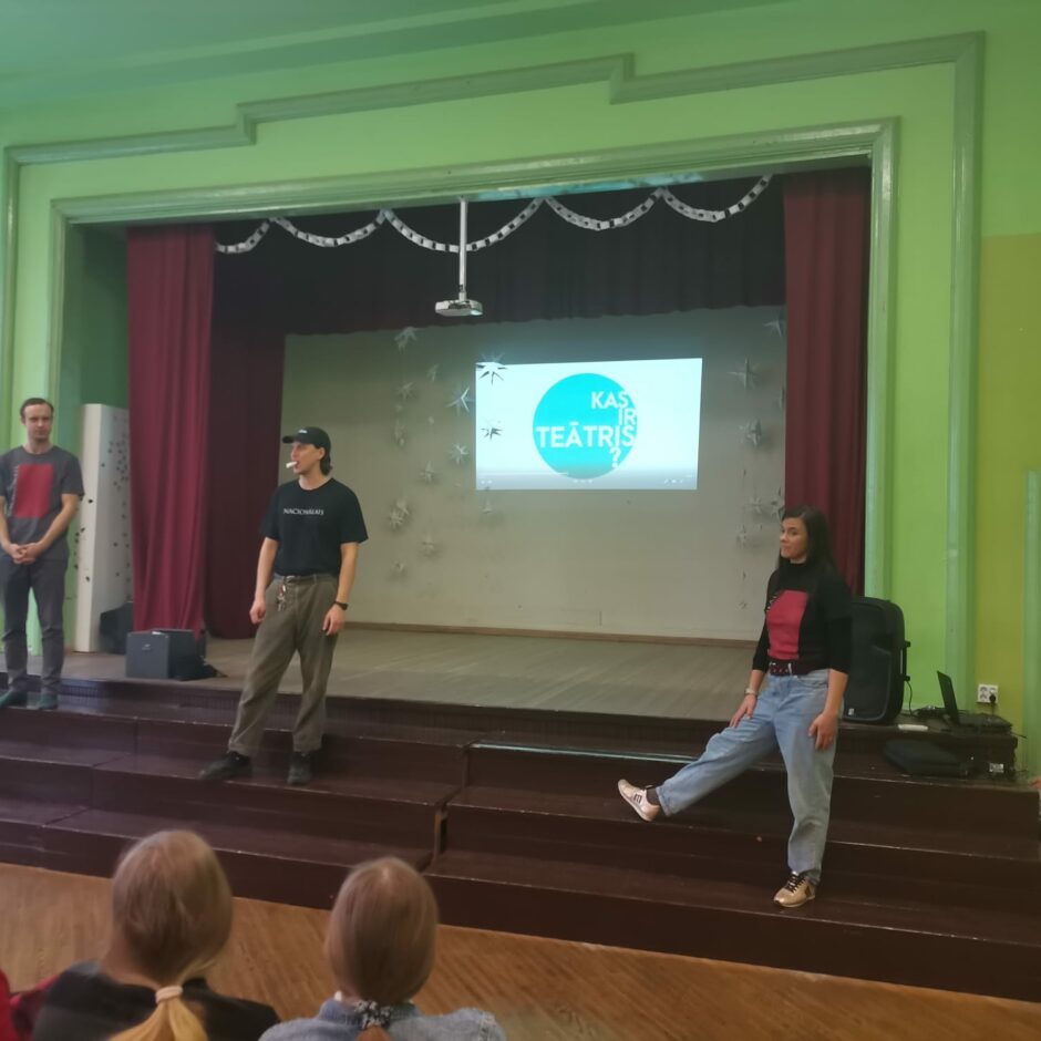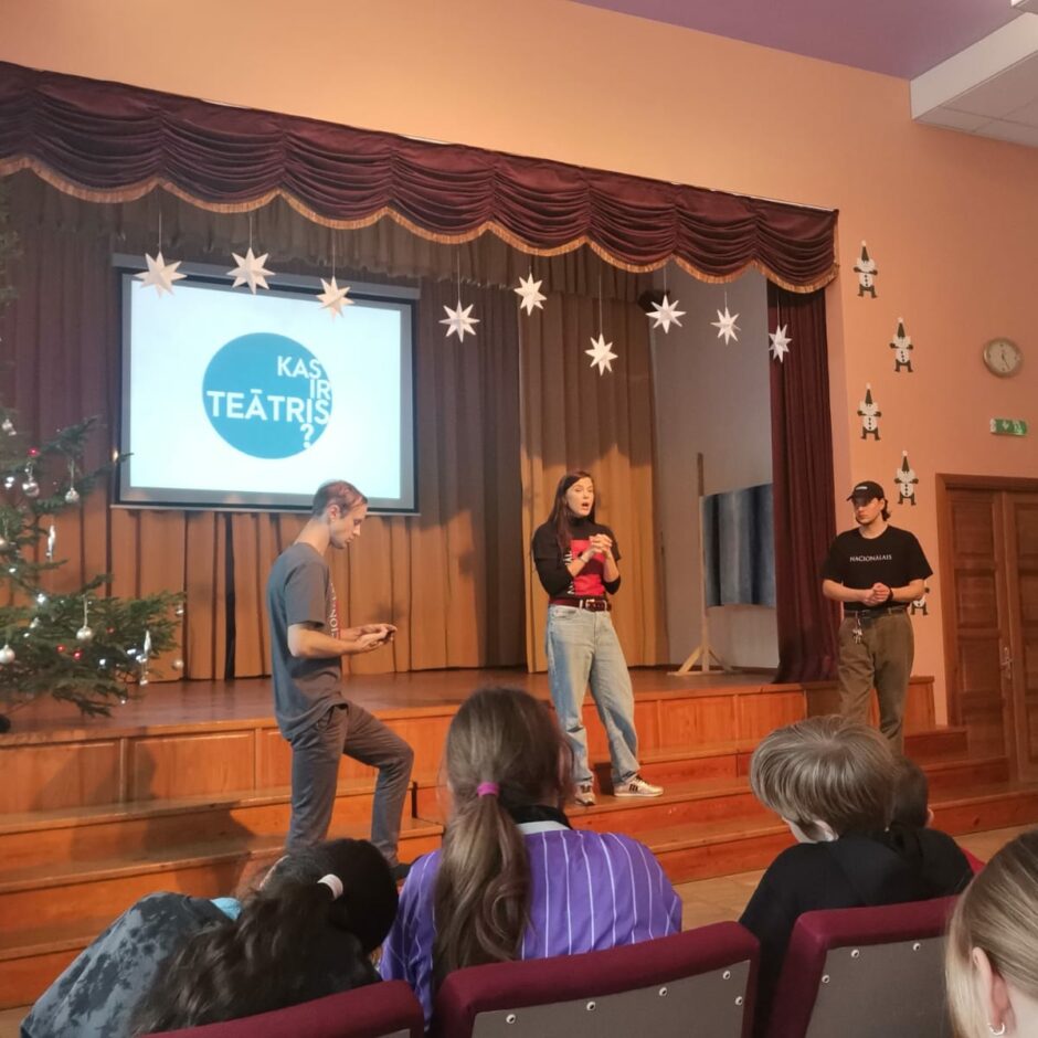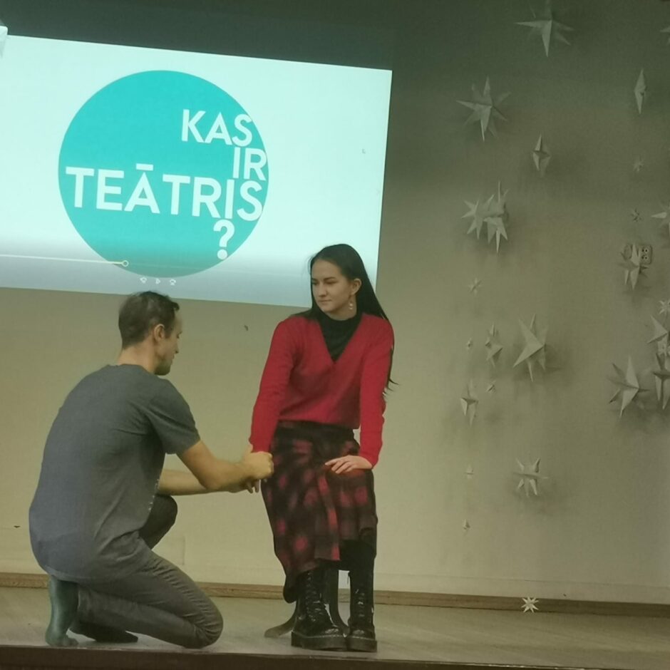 5. un 9. klasēm bija iespēja piedzīvot aizraujošu 40 minūšu piedzīvojumu, kurā tika stāstīts par teātra un mākslas jēgu mūsdienu pasaulē, demonstrēti video fragmenti no izrādēm, sniedzot komentārus par redzamo, rādot, kā dzīvo un strādā Nacionālā teātra aktieri un citi darbinieki. Izrādē-lekcijā piedalījās teātra jaunie aktieri, kuri bērniem un jauniešiem bija gatavi godīgi pastāstīt par savu pieredzi, par to, kā darbojas teātris. Tā bija iespēja gūt izpratni un interesi par aktiera, režisora, butafora, horeogrāfa, komponista, scenogrāfa profesiju.