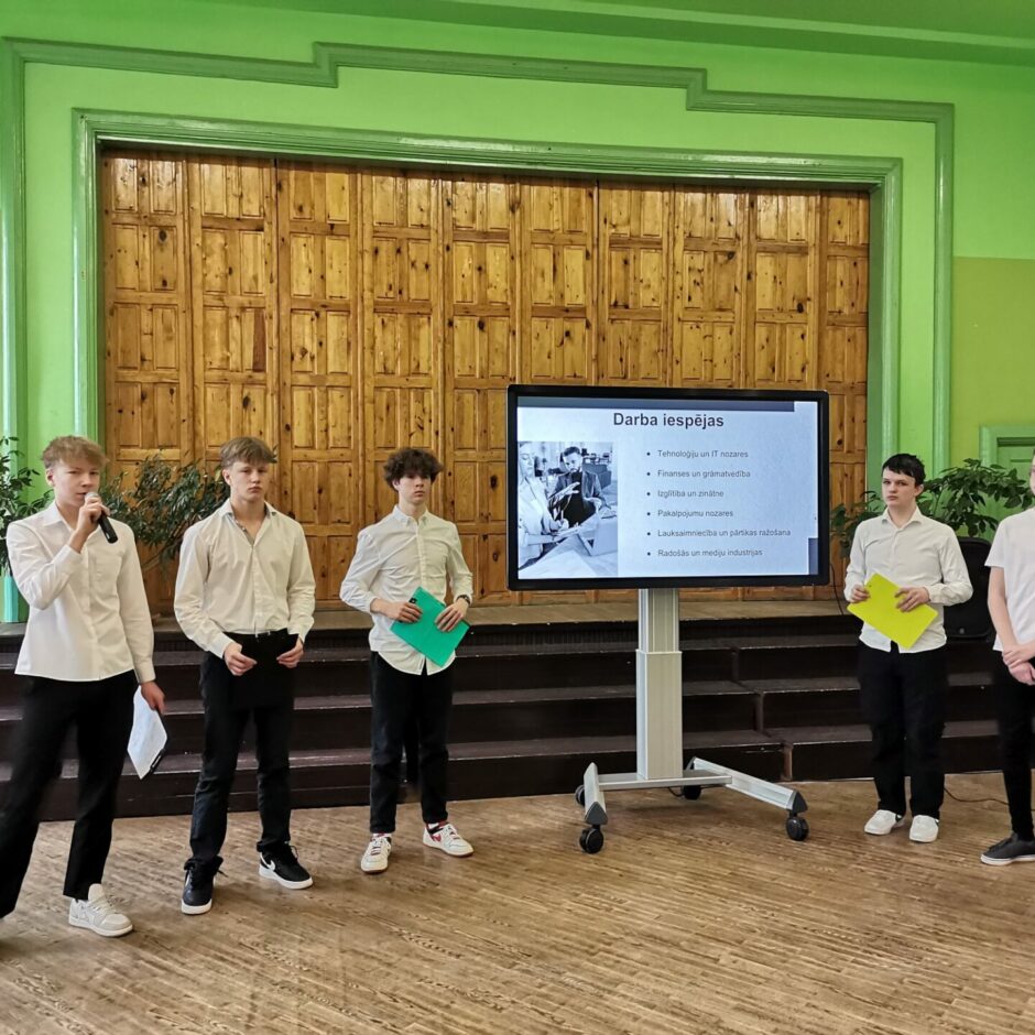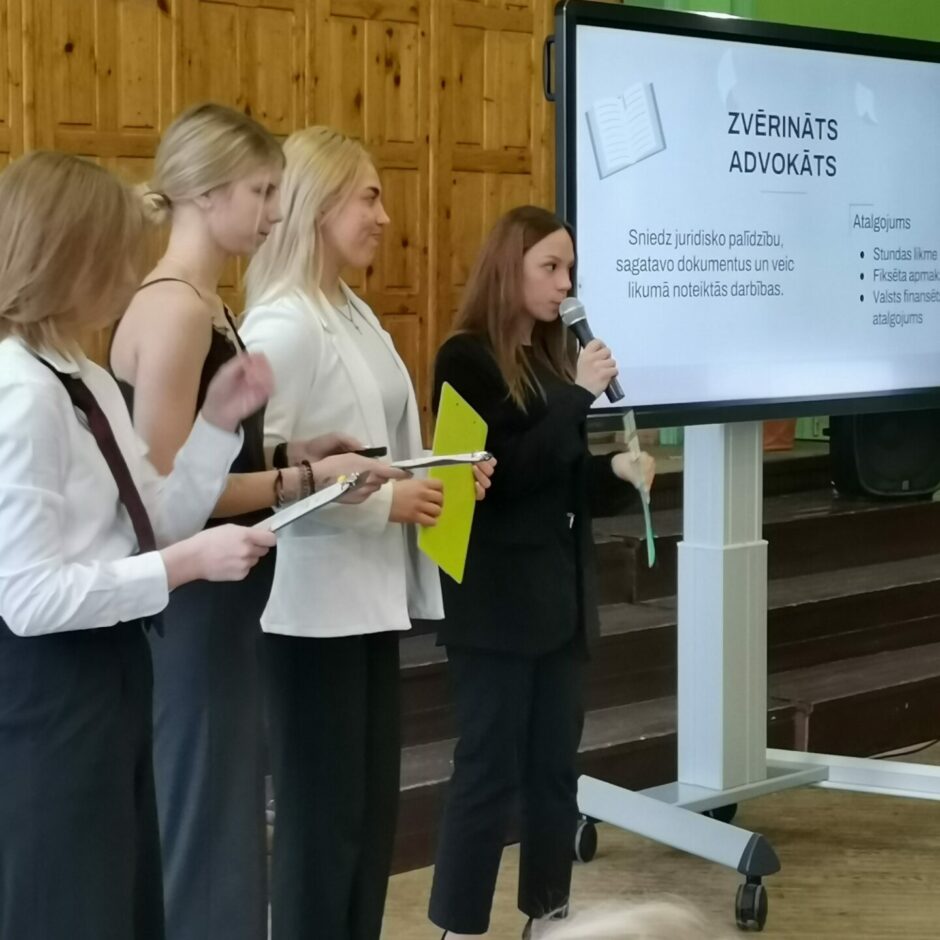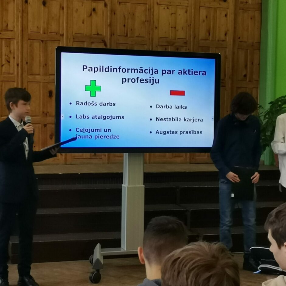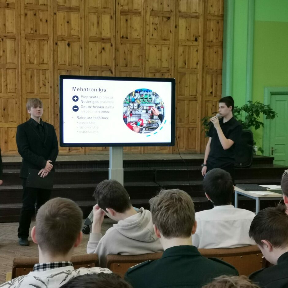5. martā 9. klašu skolēniem notika profesiju konference. Tajā varēja rast atbildes uz jautājumiem, kad sākt domāt par profesijas izvēli, kā neapjukt, ko izvēlēties, kā zināt, ka izvēle būs pareizā. Skolēniem bija iespēja vairāku nedēļu garumā meklēt ceļu uz savu izvēlēto profesiju, savukārt konferencē – iepazīt citu skolēnu izvēles un veikumu. Stāstījumi bija pārliecinoši un spilgti, katrai grupai bija padomāts par individualizētu pieeju, prezentācijas – augstvērtīgas un izstrādātas. Šī gada visvairāk izvēlētā joma – tieslietas. Bija arī viens pedagogs!