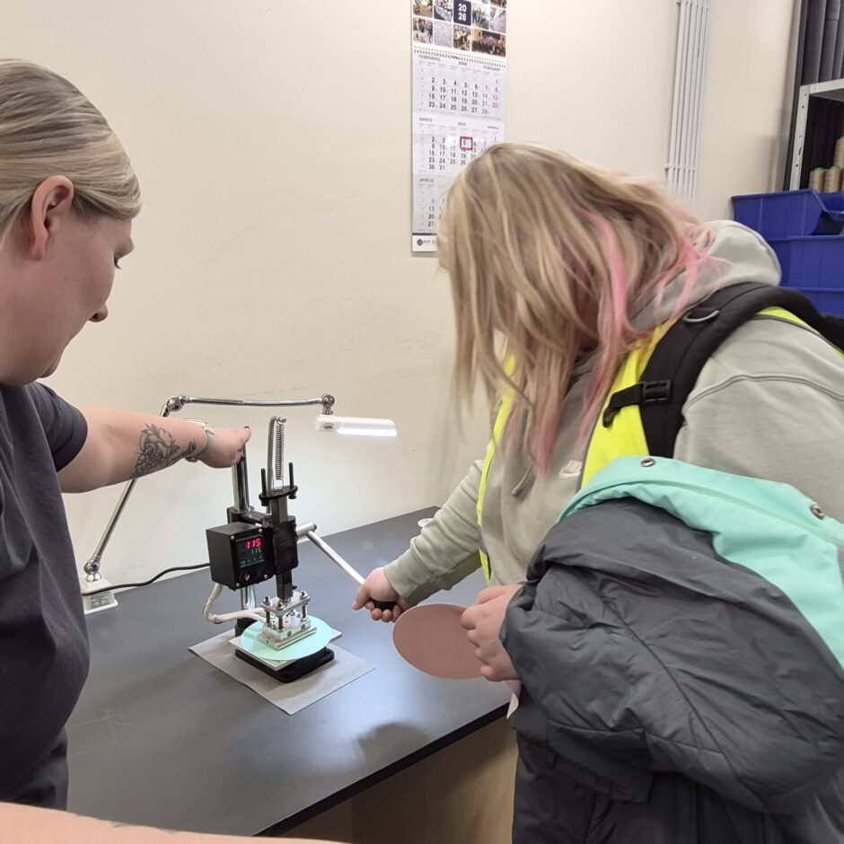 Pēcpusdienā devāmies uz uzņēmumu “Pepi RER”, uzņēmuma pārstāvis Modris Miķelsons pastāstīja par uzņēmuma vēsturi un ražoto produkciju, izveda nelielā ekskursijā pa ražotni, pēc tam ielūkojāmies “Iglu” kluču tapšanas procesā, ar to mūs iepazīstināja Kristīne Simonova.