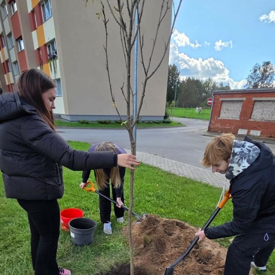 Skolas pagalmā tika iestādīti 3 pīlādži, pie PII “Pasaciņa” bērnu laukuma – 3 kļavas, pie skolas dienesta viesnīcas – 3 pīlādži, bet Ausekļa ielas teritorijā – 3 liepas un diskgolfa laukumā iestādījām 3 ozolus.
