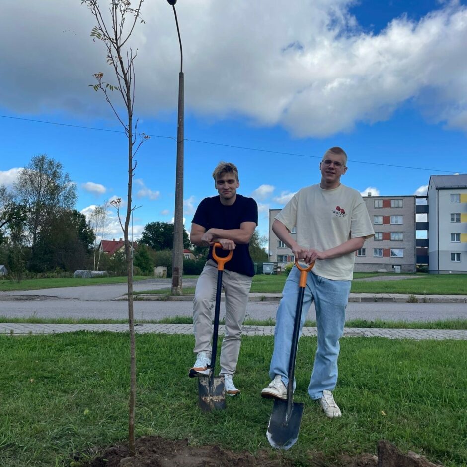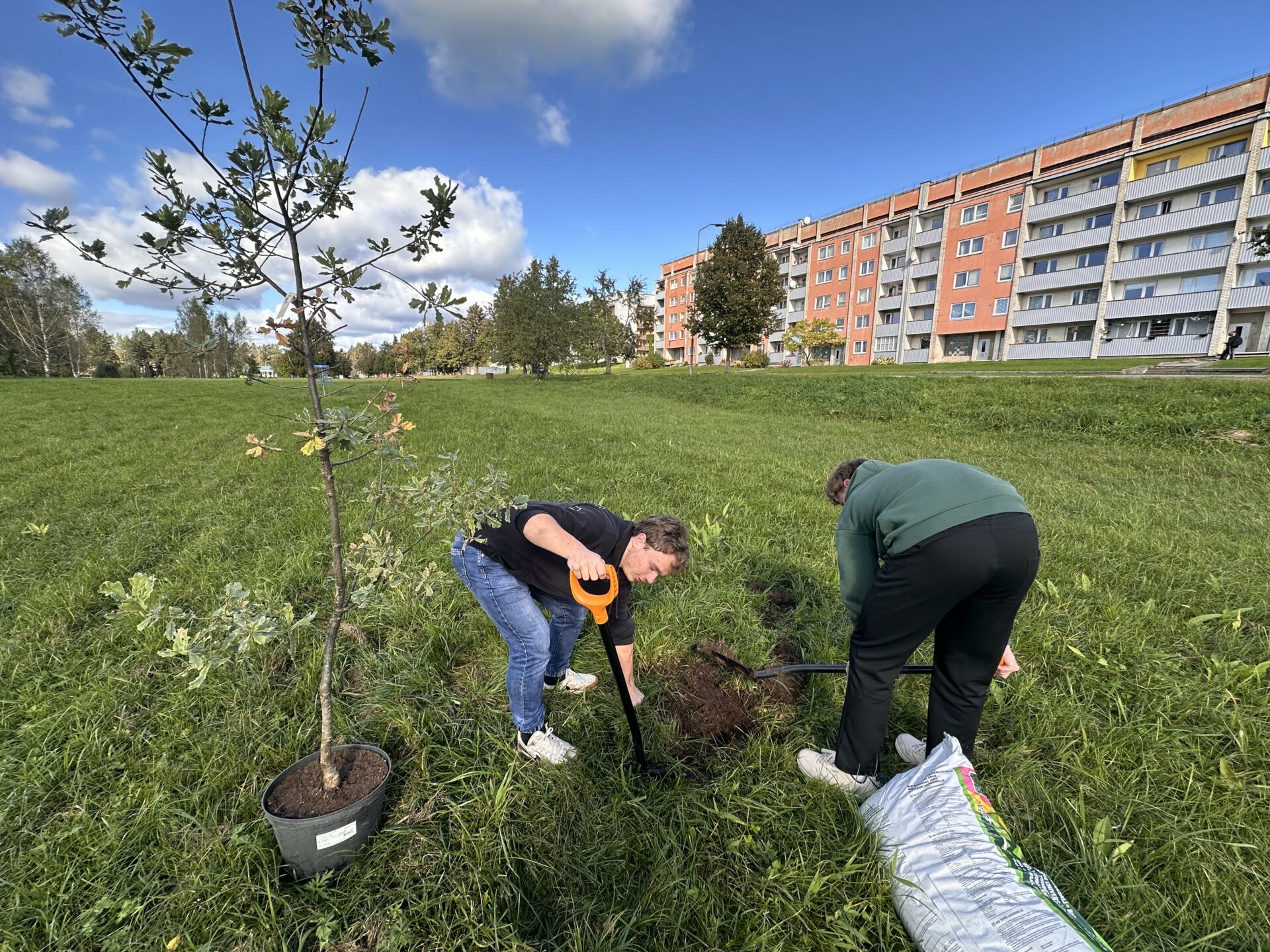 Un tā, 24. septembra pēcpusdienā 12. klases skolēni kopā ar deputātēm Līgu Lāci-Jerumu, Baibu Karpovu un Andu Kušķi stādījām kokus Valkas pilsētas apkārtnē.