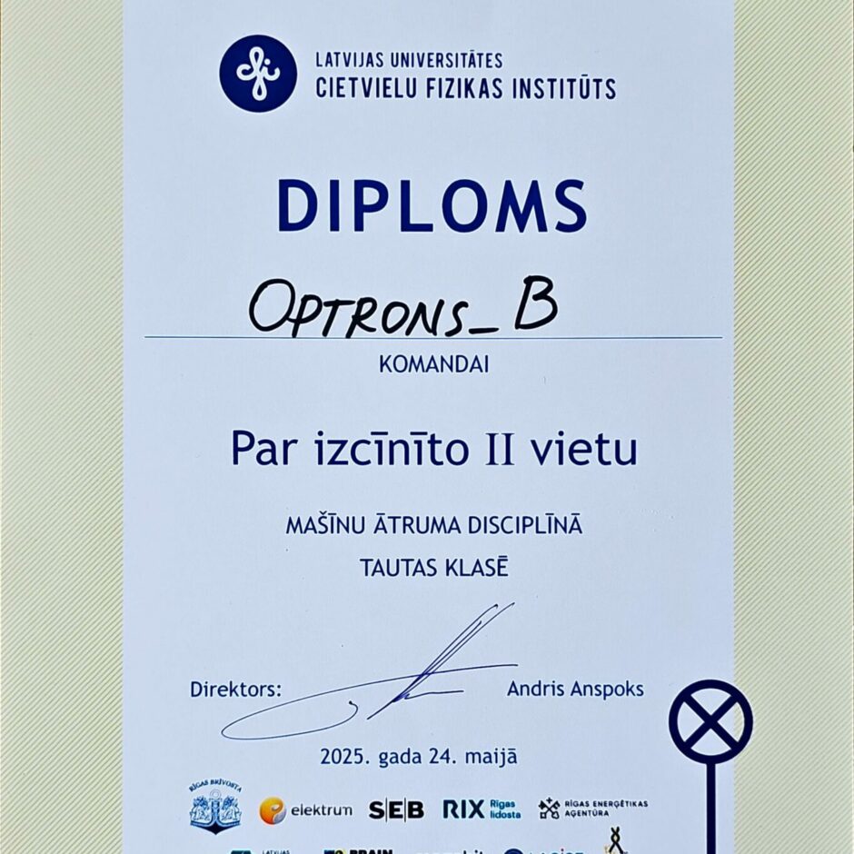Komanda Optrons-B piedalās LU CFI rīkotajā Saules kausā un iegūst 2. vietu Tautas klases ātruma sacensibās.