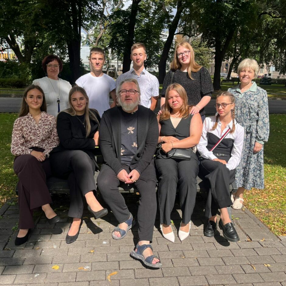 Vēl, pirms Rīgas pils apmeklējuma skolēni pavisam nejauši satika literātu Ilmāru Šlāpinu.