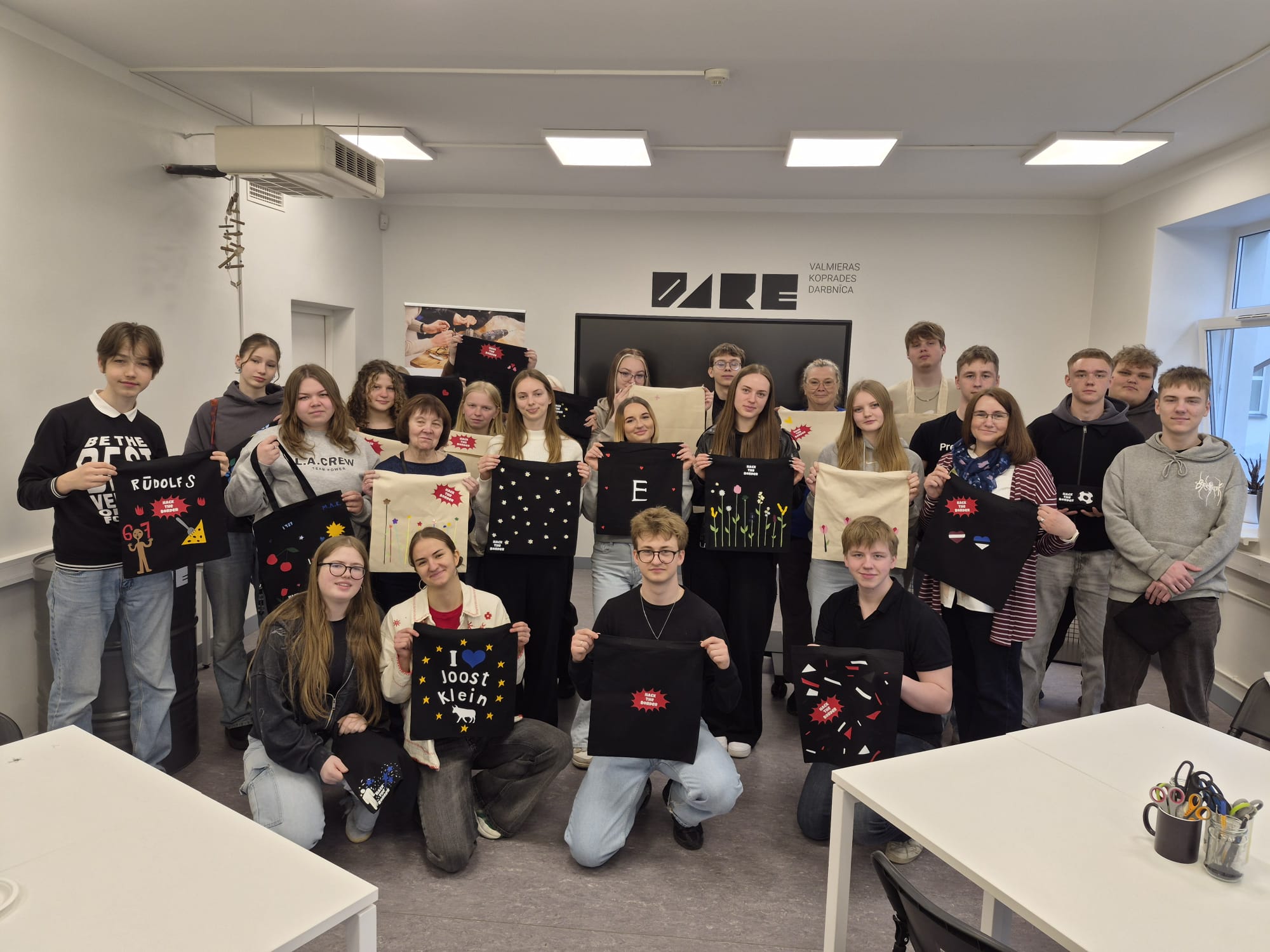 Pirmā diena tika pavadīta Valmierā, vispirms apmeklējām kopdarbnīcu “Dare”, uzzinājām, ka tā ir vieta, kur ikviens var īstenot savas radošās idejas. Mums pastāstīja par dažādām iekārtām, kas ļauj uzdrukāt dizainus uz T-krekliem un krūzēm, kā arī izveidot unikālus priekšmetus . Īpaši interesanti bija redzēt 3D printerus darbībā, kas spēj izgatavot dažādus objektus no digitāliem modeļiem. Darbnīcā ir arī koka griešanas aparāts un izšūšanas rīks, kas paplašina radošo iespēju klāstu. Lieliskākais ir tas, ka jebkurš interesents var īrēt šīs iekārtas par noteiktu summu. Kopumā šī vieta šķita ļoti iedvesmojoša un piemērota gan iesācējiem, gan pieredzējušiem radītājiem, gan jaunajiem uzņēmējiem. Mēs katrs izveidojām unikālu auduma maisiņu ar savu veidotu dizainu, tā būs laba piemiņa no projekta.