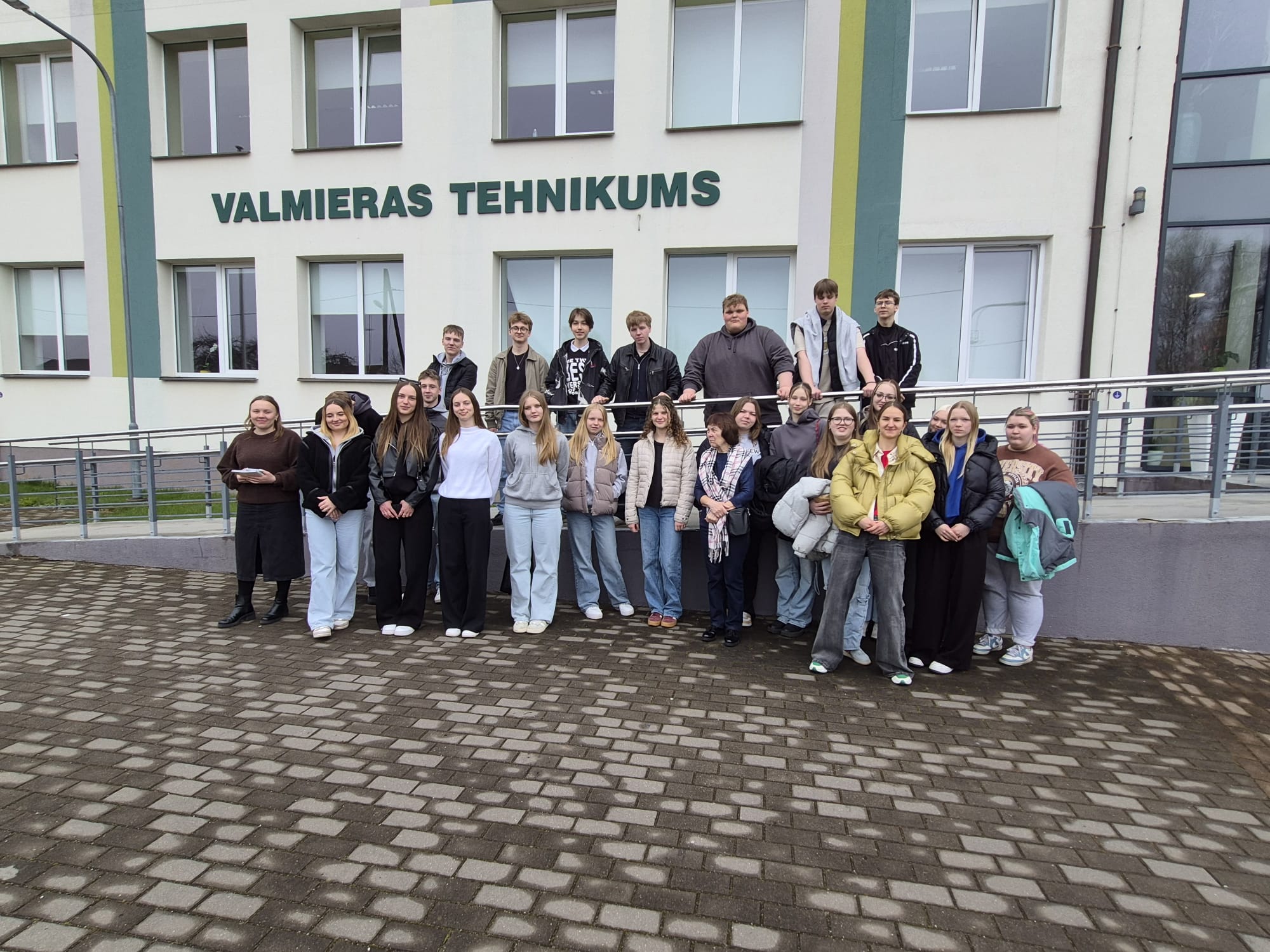 Kā nākamo apmeklējām Valmieras tehnikumu, mums bija ekskursija pa skolu, reizē iepazīstinot ar daudzveidīgajām profesijām, kuras var šeit apgūt. Interesanti bija ieraudzīt dažādas ierīces, kuras izmanto gan topošie pārtikas produktu ražošanas tehniķi un pavāri, gan loģistikas darbinieki, mehatroniķi un metinātāji. Pēc iepazīšanās ar skolu visiem bija izmēģināt virtuālo metināšanu un sabērt savu garšvielu maisiņu .