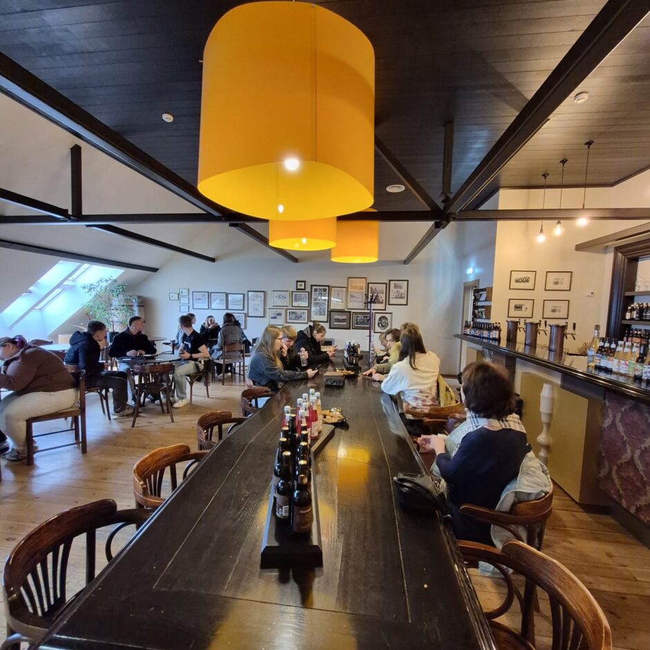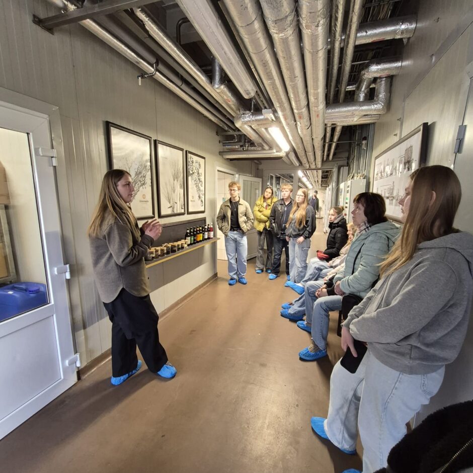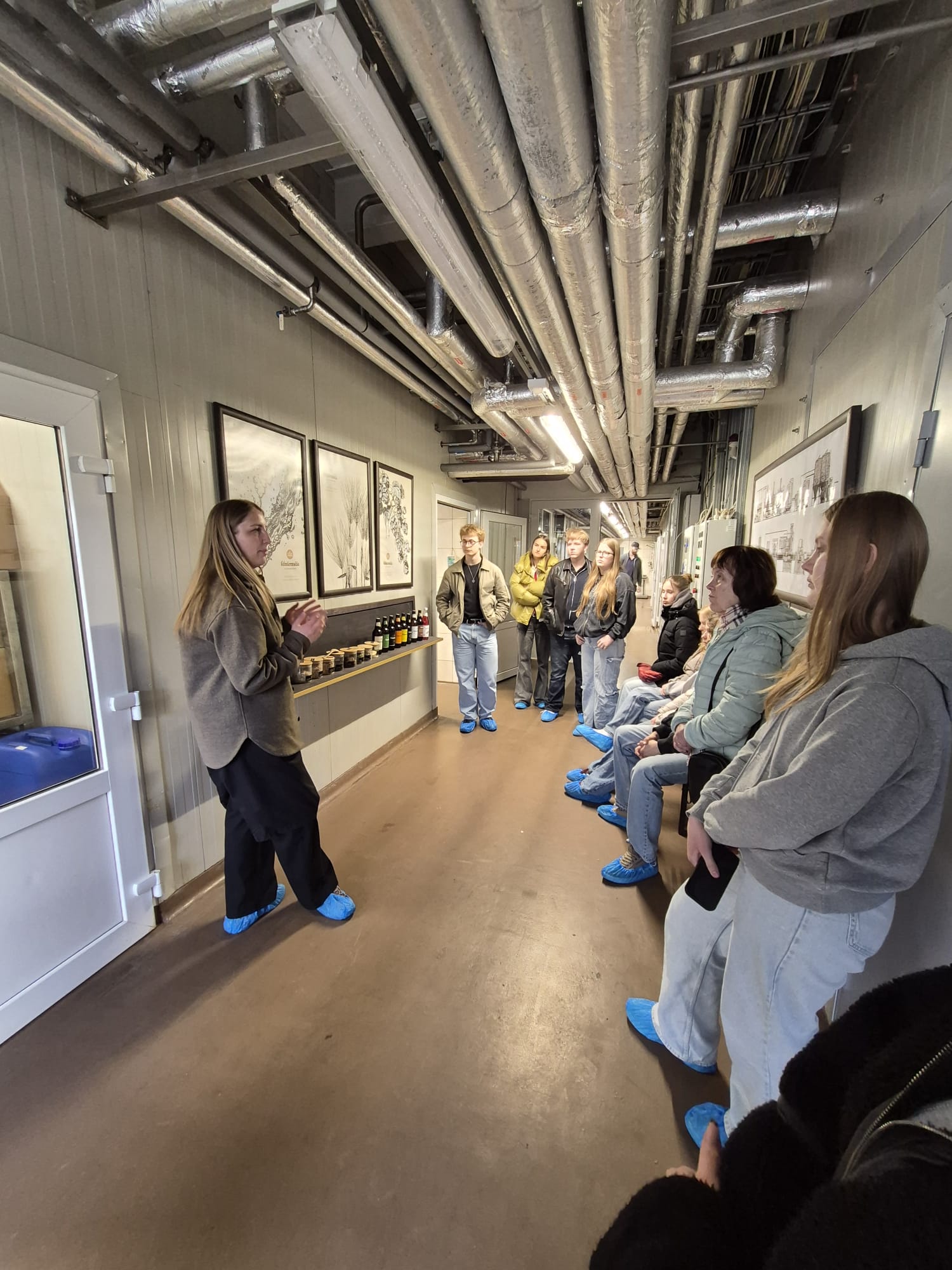 Dienas noslēgums tika aizvadīts uzņēmumā “Valmiermuiža” . Ekskursija Valmiermuižā sākās ar vēstures izzināšanu par princi Pēteri Augustu Frīdrihu, kurš uzcēla šo muižu un ir priekštecis Lielbritānijas karalim Čārlzam III. Mēs apmeklējām alus darītavu, kur vērojām ražošanas procesu un uzzinājām par ilgtspējīgu stikla pudeļu mazgāšanu, kā arī 120 metru dziļo urbumu, kas pērn ļāva saražot 3,4 miljonus litru dzērienu. Degustācijas laikā mēs baudījām neparastus gardumus – no ražošanas pārpalikumiem gatavotus kraukšķīgus drabiņu cepumus un saldas iesala karameles,kā arī baudījām šeit brūvēto kvasu, cidoniju un dzērveņu zelterus, uzzinājām, ka Igaunijā mūsu zelteri draudzīgi dēvē par “Kaimiņš” jeb Naaber. Kā arī pārbaudījām savu ožu, mēģinot atpazīt piecus dažādus aromātus. Uzņēmums atbalsta latviešu kultūru, piemēram, jau trešo gadu sadarbojas ar Nacionālo teātri, brūvējot īpašu alu “Skroderdienām Silmačos”.