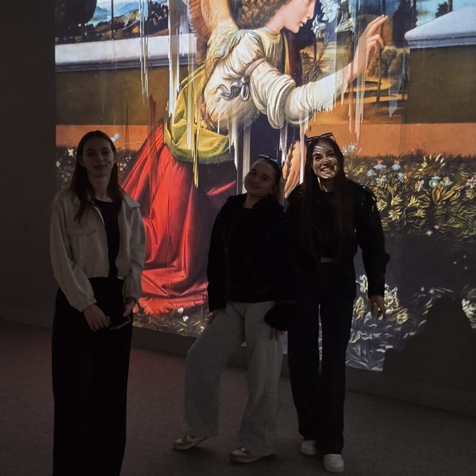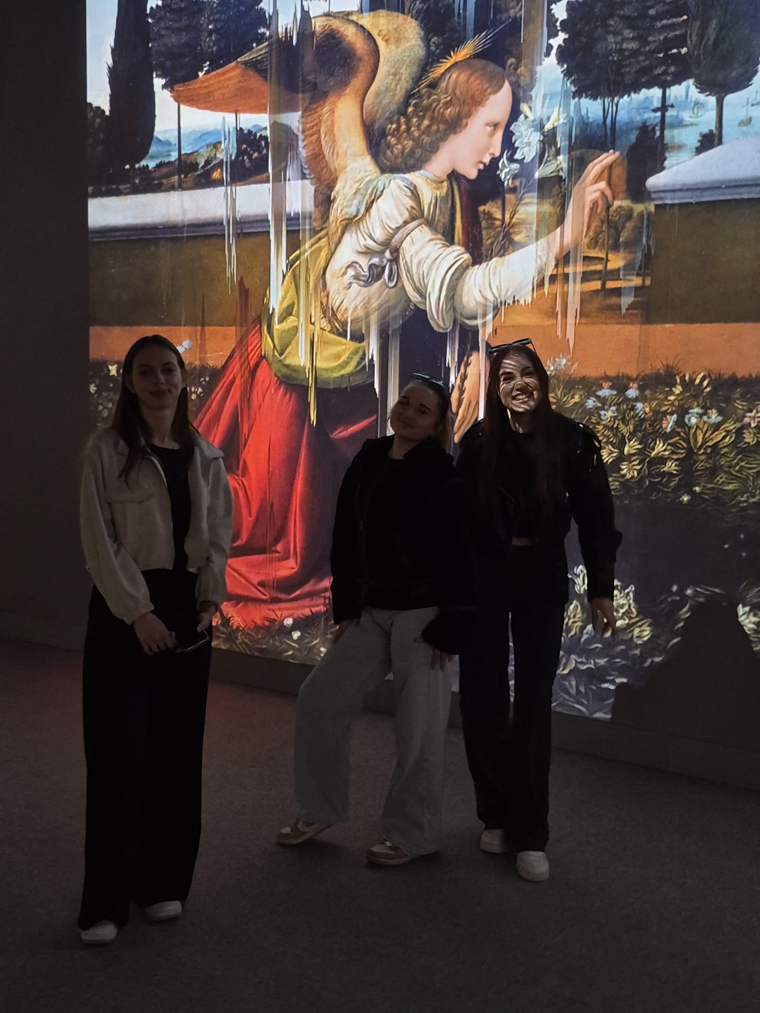 Otrā dienā mēs devāmies uz Rīgu. Galvaspilsētā apmeklējām Leonardo da Vinci izstādi, kurā guvām multimediālu mākslas pieredzi 47 minūšu garumā. Izstāde ir izraujošs mūsdienu ceļojums cauri Leonardo da Vinči dzīvei un darbiem. Viņa inovācijas un izgudrojumi ir leģendāri, un viņš unikālā veidā apvienoja zinātni, tehnoloģijas, inženieriju, matemātiku un mākslu, domās būdams gadsimtiem uz priekšu. Telpā valdīja nedaudz tumša un mierīga atmosfēra, uz sienām nepārtraukti mijās dažādas projekcijas ar zvaigznēm , kalniem, izgudrojumiem, planētām un gleznām . Kustīgie attēli, gaismas un mūzika radīja sajūtu kā citā pasaulē un lika justies kā daļai no izstādes.