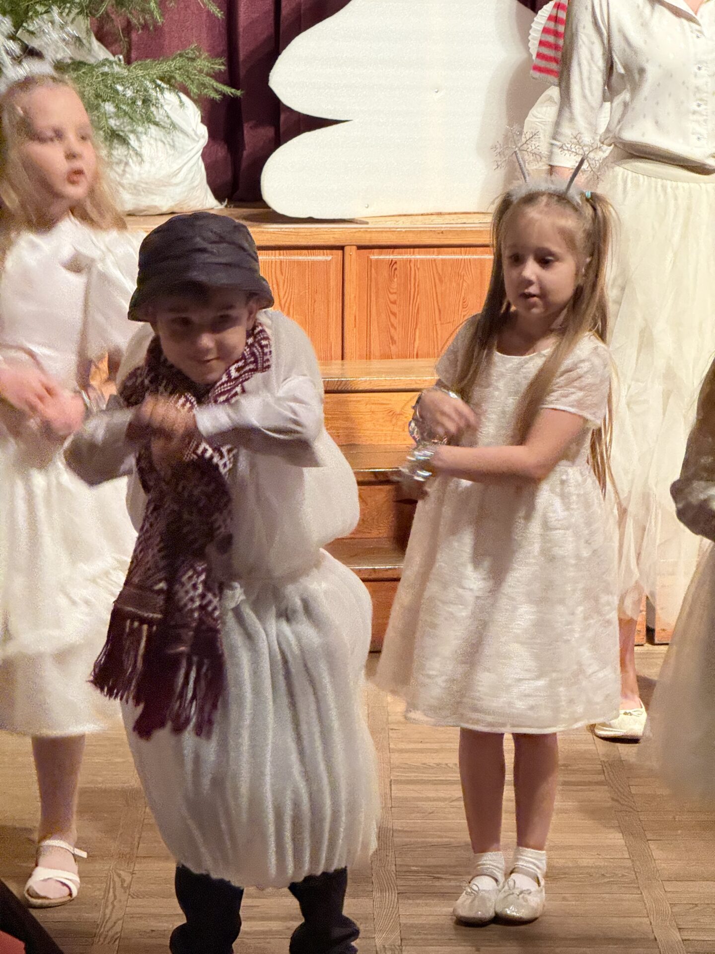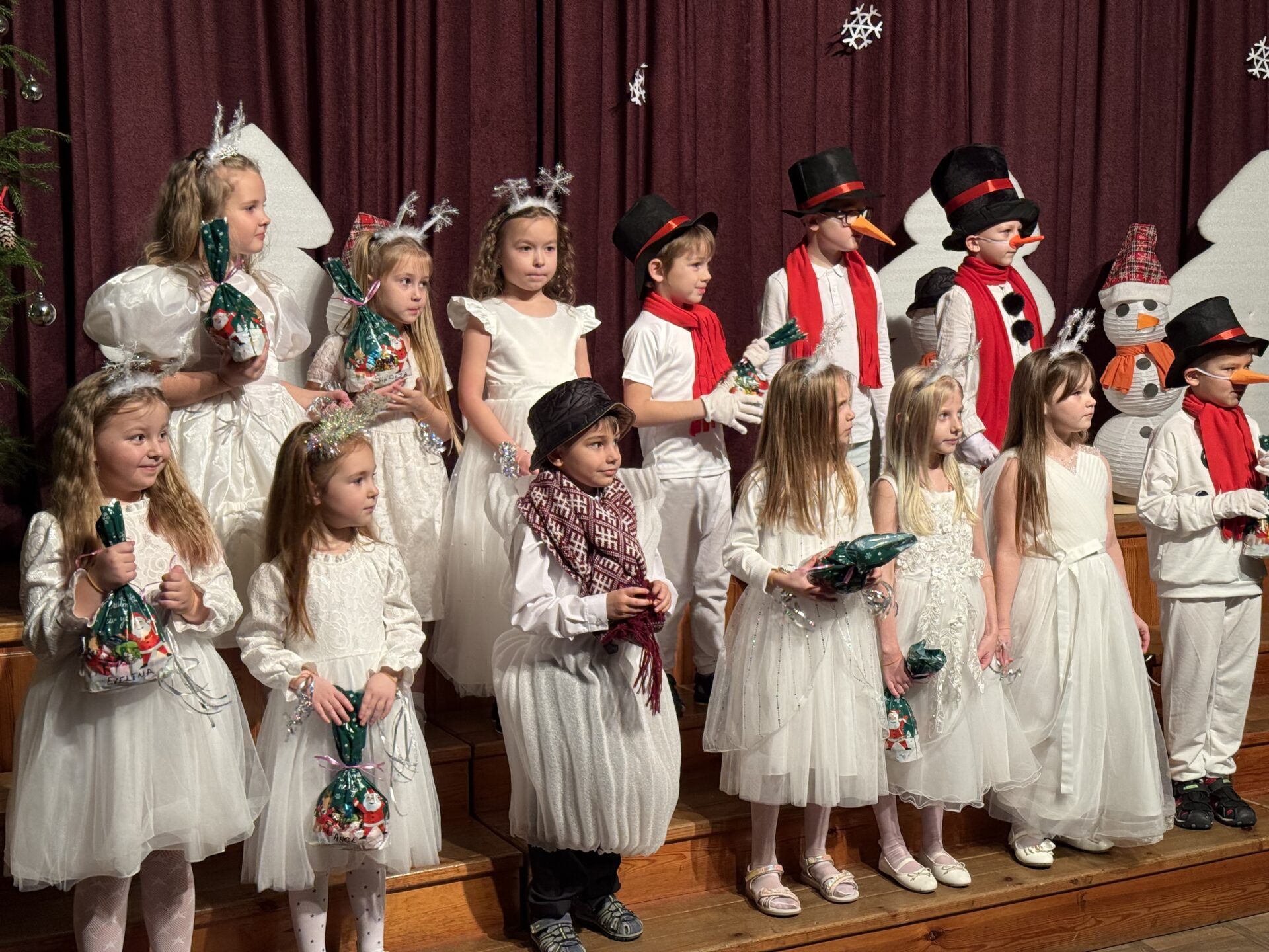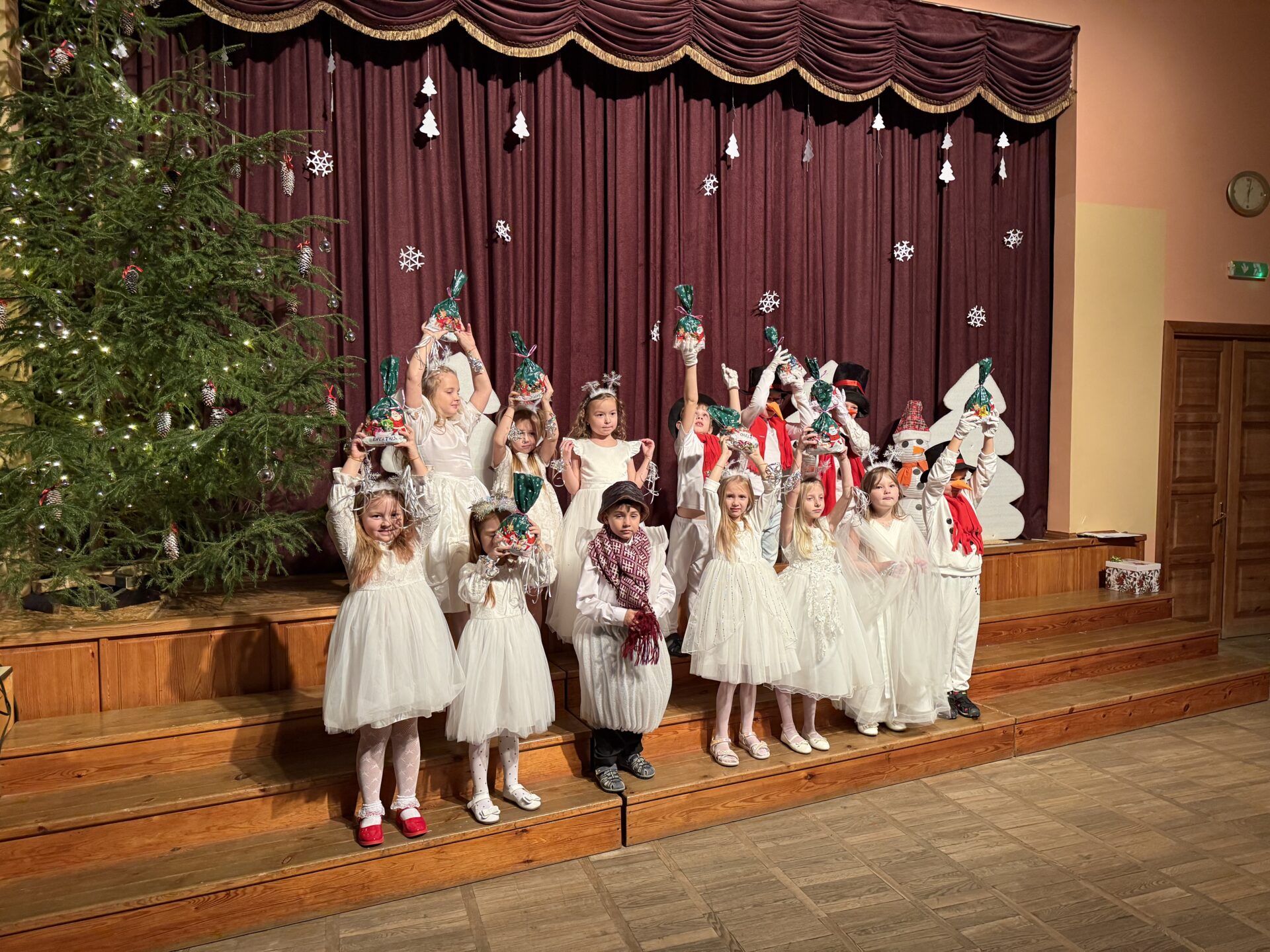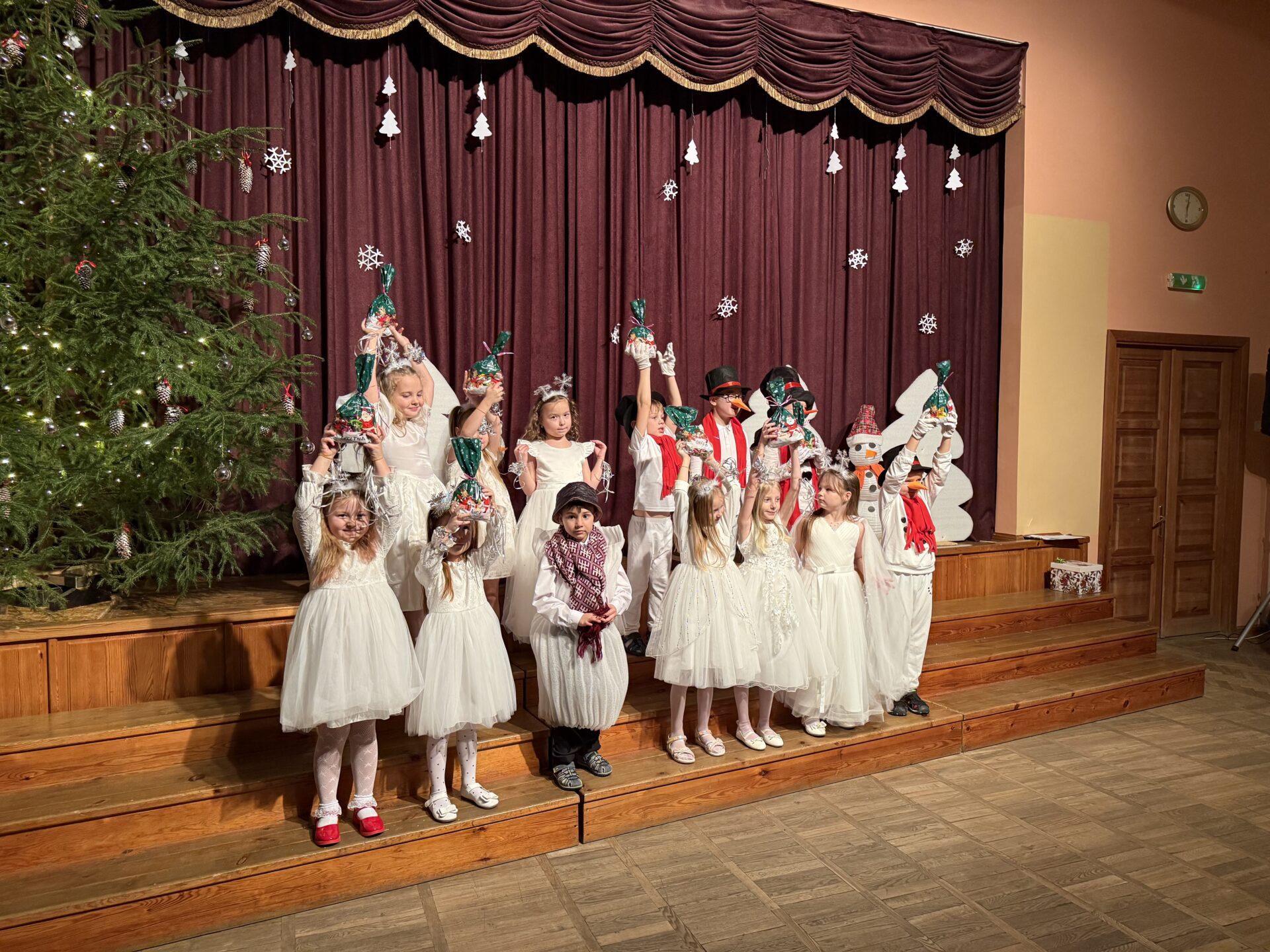 Mazie svētku dalībnieki ar lielu aizrautību dziedāja Ziemassvētku dziesmas, dejoja un skaitīja dzejoļus, radot patiesi svinīgu noskaņu. Katrs priekšnesums bija rūpīgi sagatavots. Paldies pirmsskolniekiem un audzinātājām!