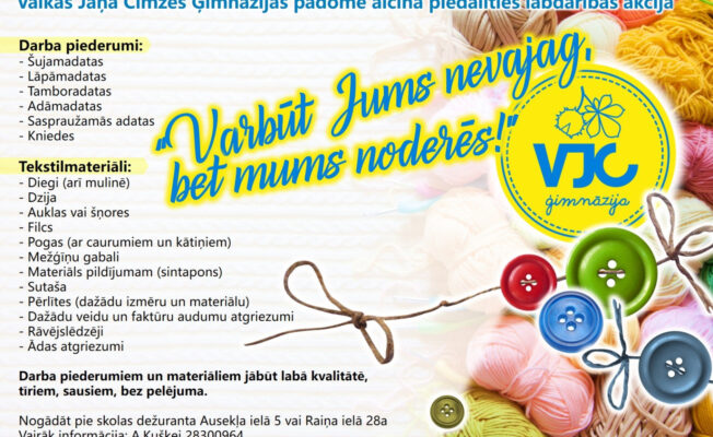 Aicinām piedalīties Valkas Jāņa Cimzes Ģimnāzijas padomes labdarības akcijā!