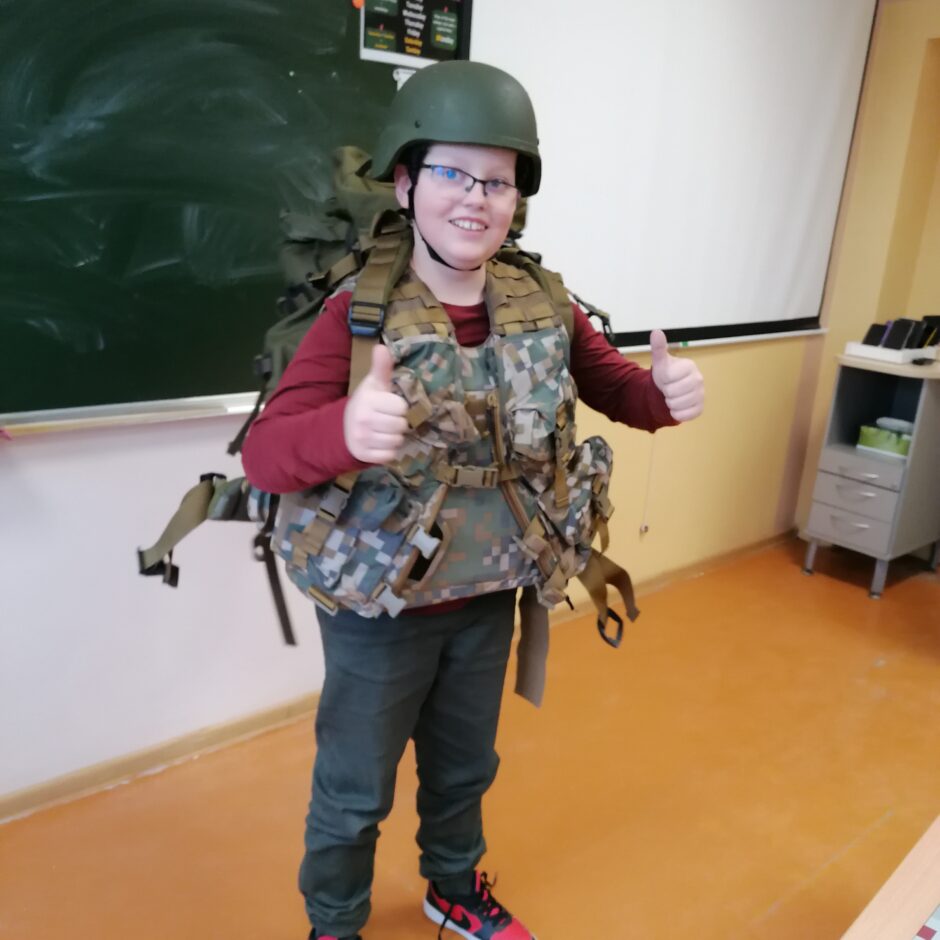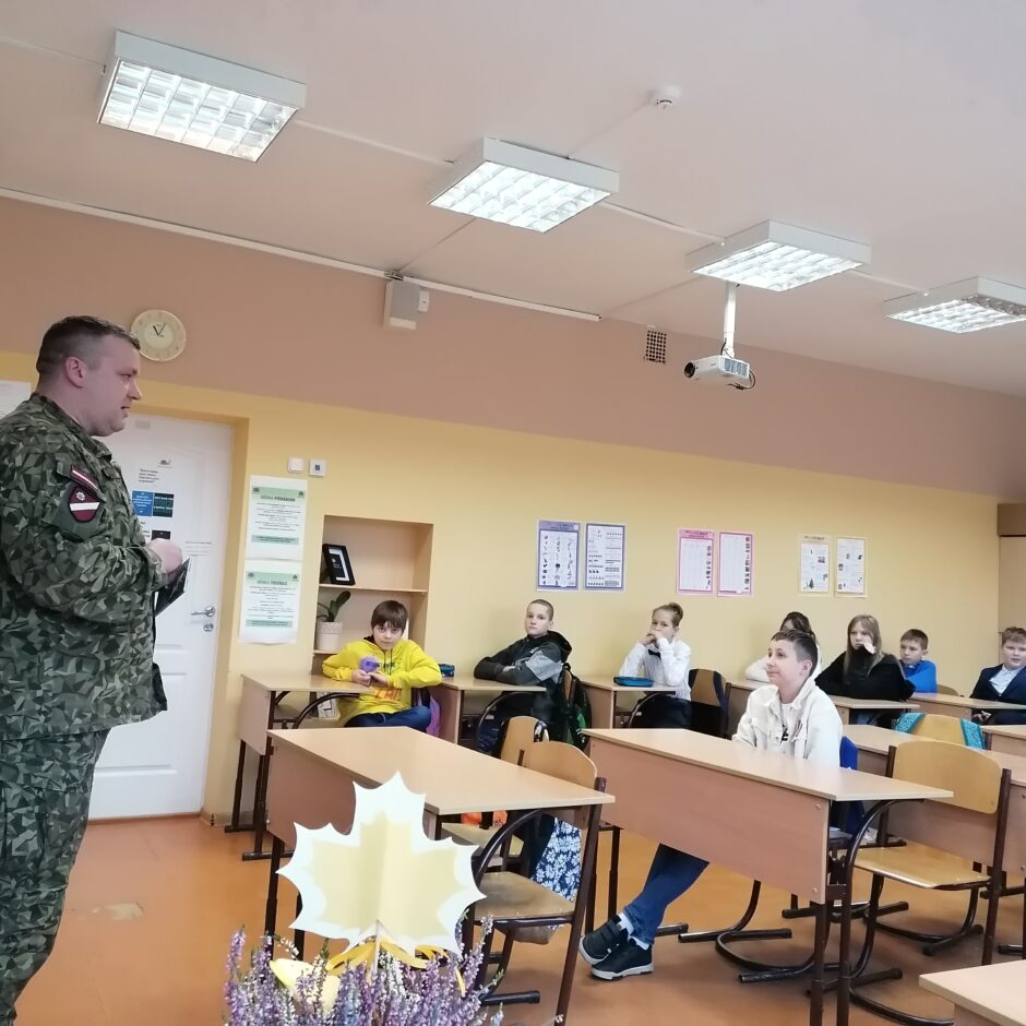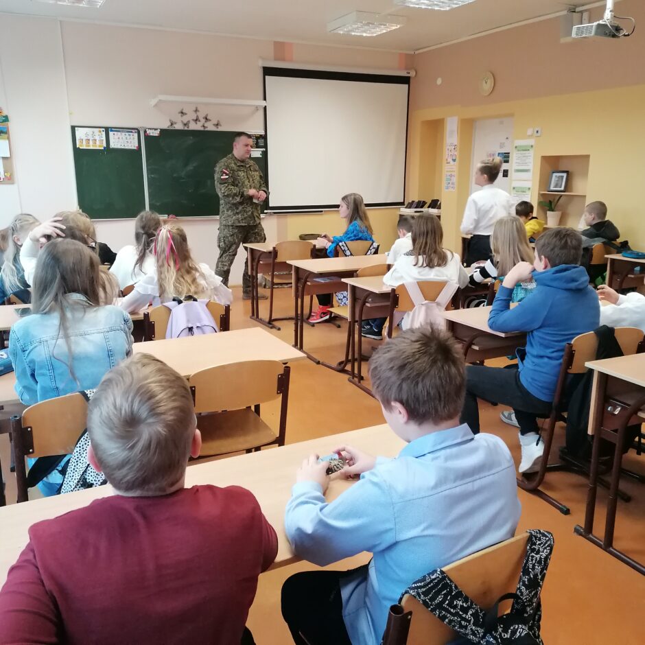 Pirmsvētku klases stundā pie 5.c klases viesojās ZS 22. Kaujas nodrošinājuma bataljona pārstāvis virsseržants Ingus Auziņš, lai ar jauniešiem runātu par patriotismu, NBS, Zemessardzi un Jaunsardzi.