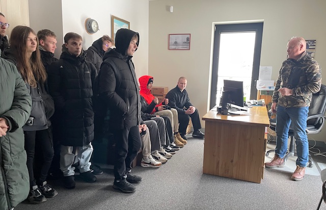Dienas turpinājumā 12. klases skolēni apmeklēja Salacgrīvas ostas pārvaldi, tikās ar kapteini viņa darba vietā. Uzņēmumā “Buras”, baudīja skaisto skatu uz jūru un ledlauža darbu upē, iepazinās ar uzņēmuma vēsturi, laivošanas inventāru un telpām, kuras izmanto novada jaunieši ziemas laikā, kad nevar trenēties Salacas upē un jūrā. Pēc tam tika apmeklēts Salacgrīvas muzejs, kur skolēni iepazinās ar dažādiem eksponātiem, tostarp padomju laika istabiņu un akmens skulptūrām, kas ļāva ielūkoties pagātnē.