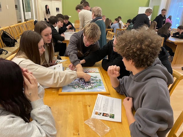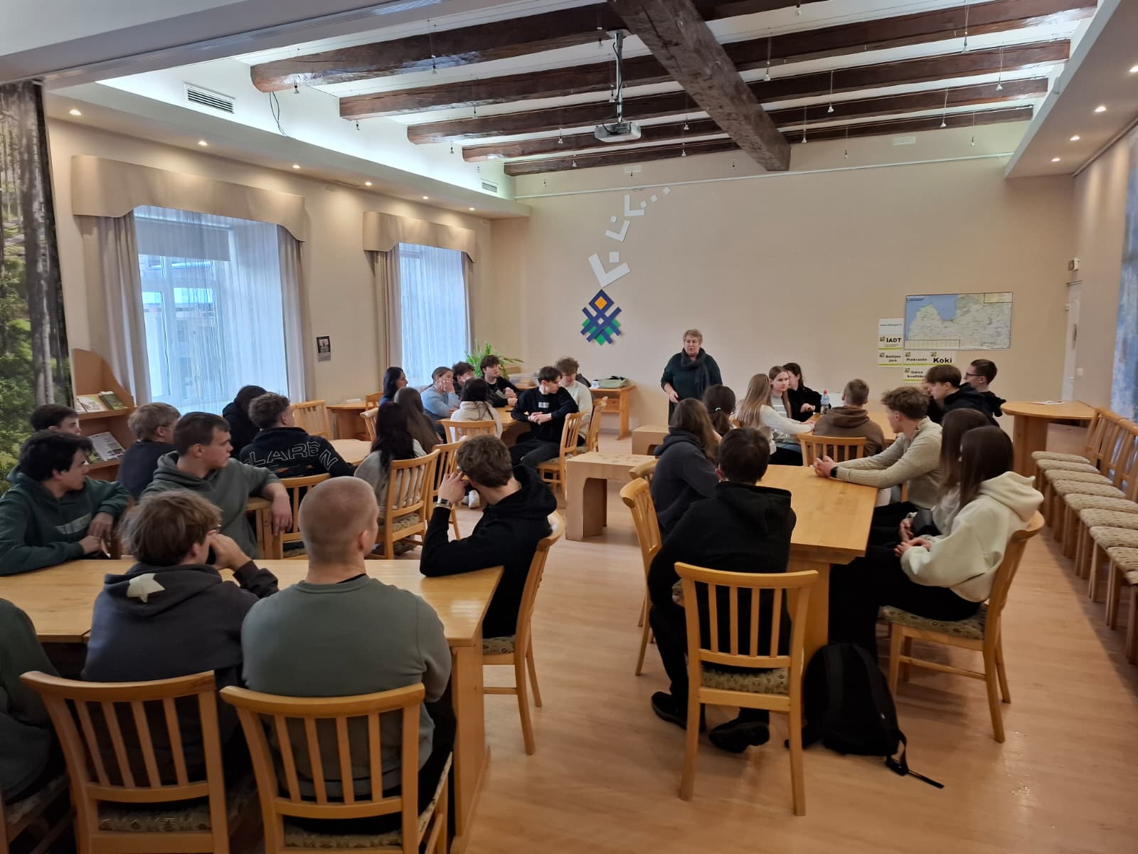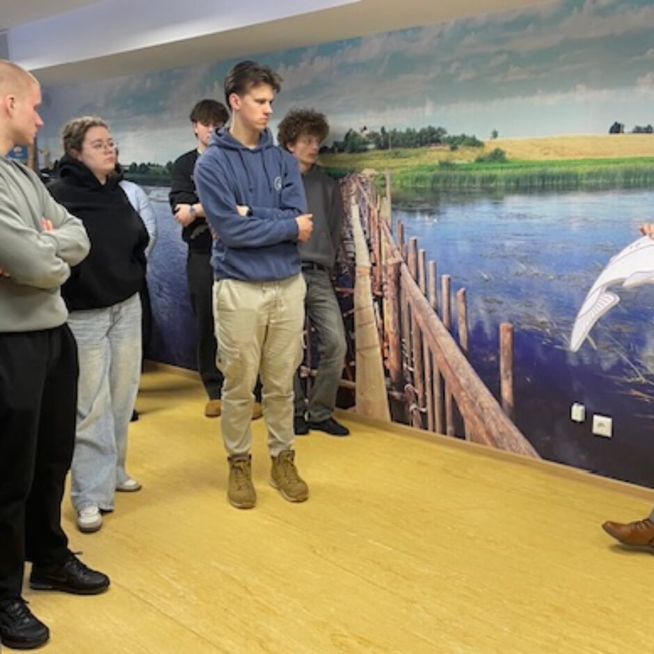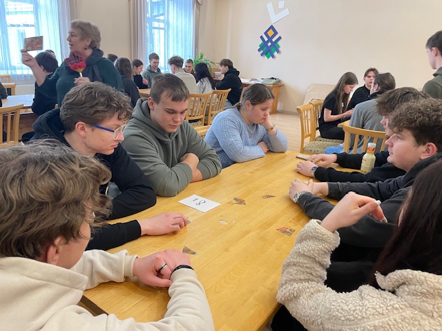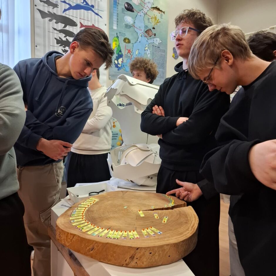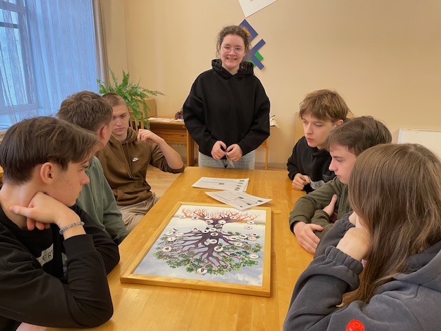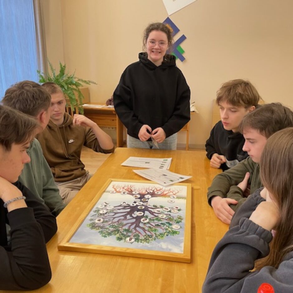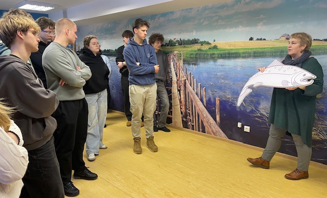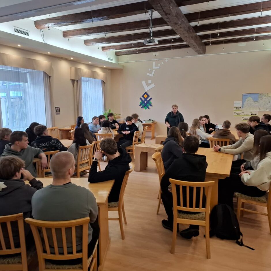 Tālāk skolēni devās uz Dabas aizsardzības pārvaldi, kur piedalījās izzinošā nodarbībā par dabu. Darbojoties jauktās grupās, Salacgrīvas un Valkas jaunieši saliedējās, pildīja uzdevumus un uzzināja vairāk par zivīm, augiem un dažādām ekosistēmām.
