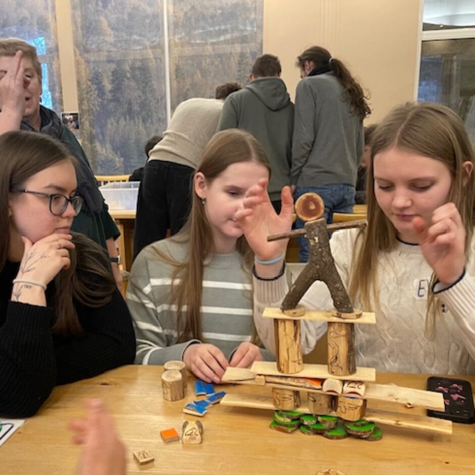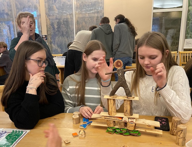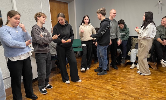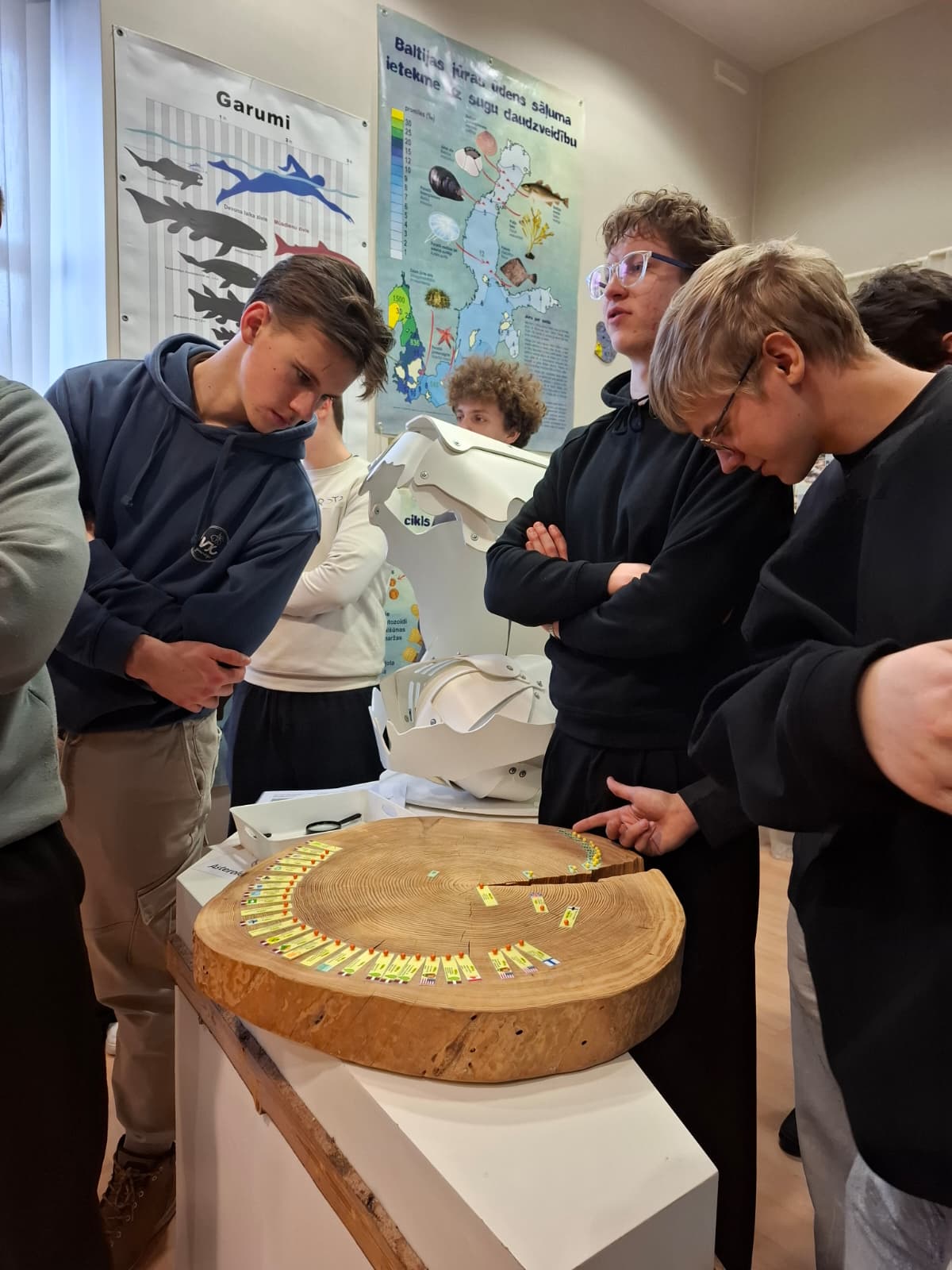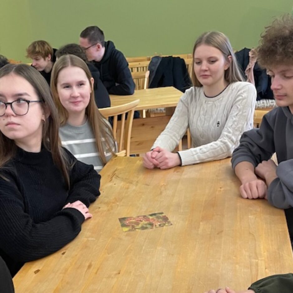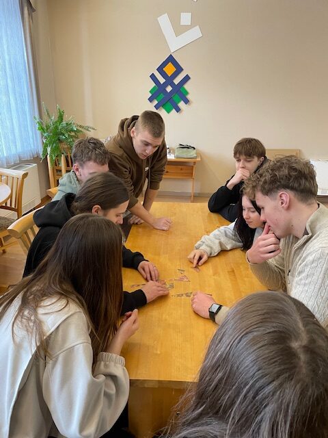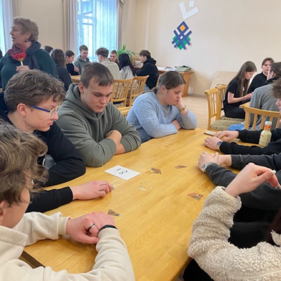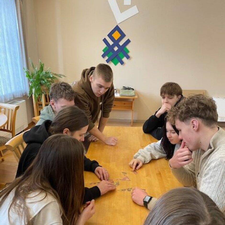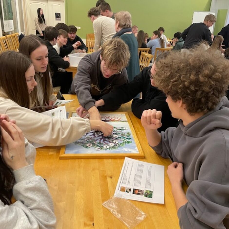 Tālāk skolēni devās uz Dabas aizsardzības pārvaldi, kur piedalījās izzinošā nodarbībā par dabu. Darbojoties jauktās grupās, Salacgrīvas un Valkas jaunieši saliedējās, pildīja uzdevumus un uzzināja vairāk par zivīm, augiem un dažādām ekosistēmām.