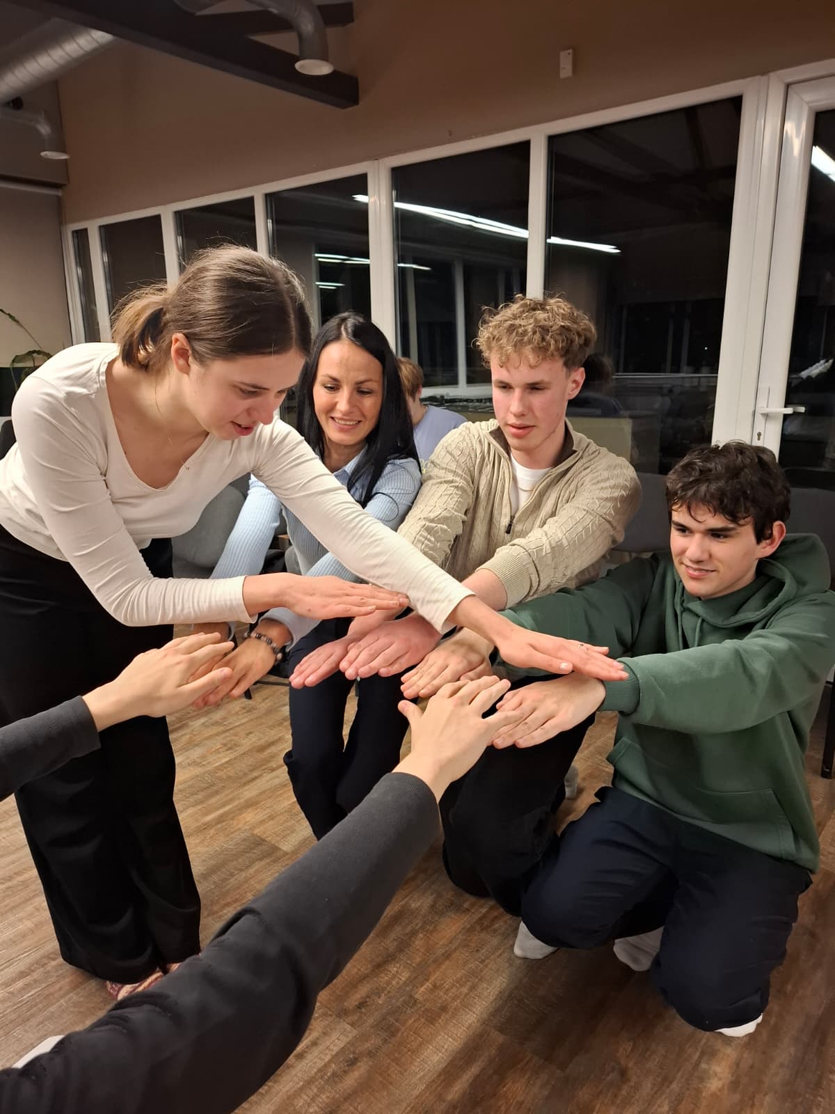 Vēlāk jauniešu centrā “Bāka” notika saliedēšanās pasākums: kopīga maltīte, muzikāls priekšnesums G. Grotes Majores izpildījumā un dažādas teātra sporta aktivitātes Salacgrīvas un Valkas jauniešu saliedēšanās veicināšanai.