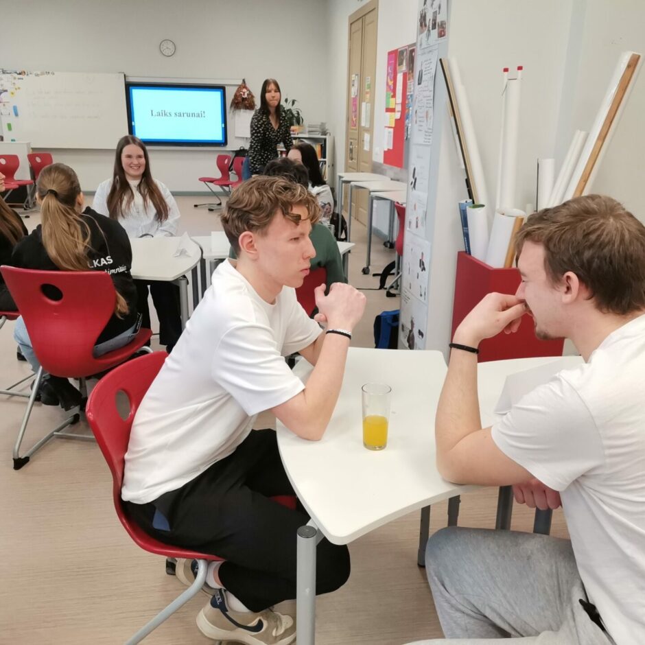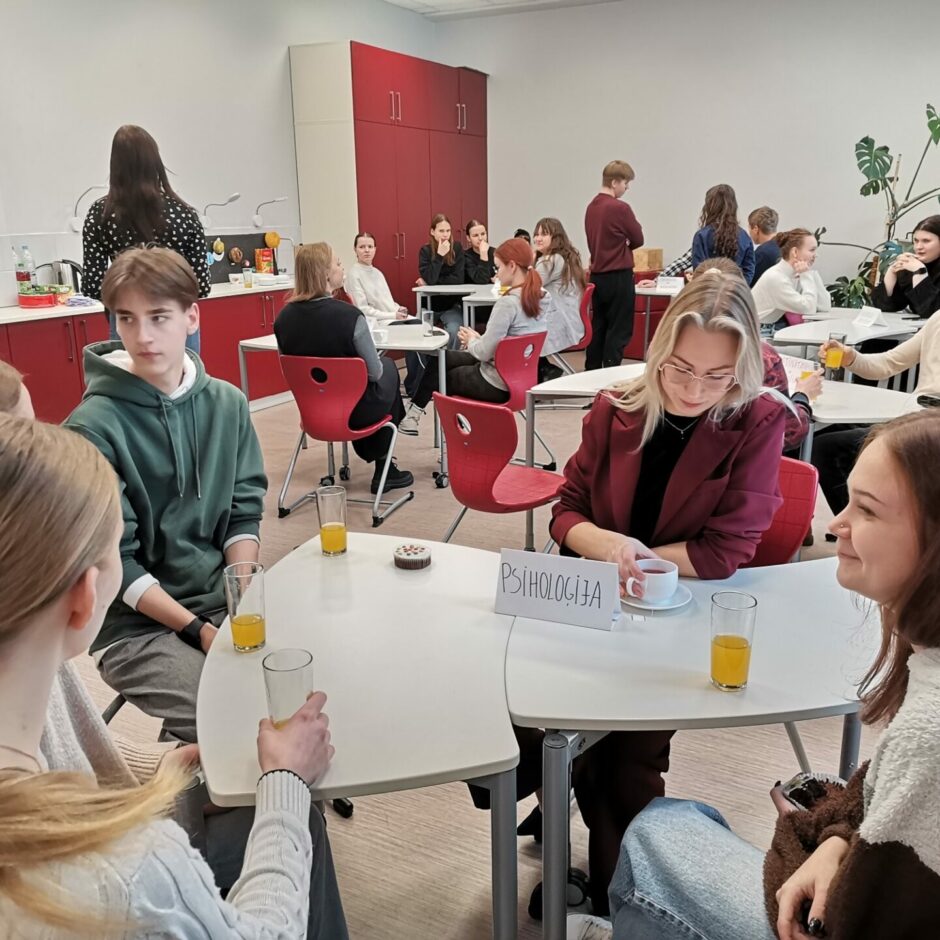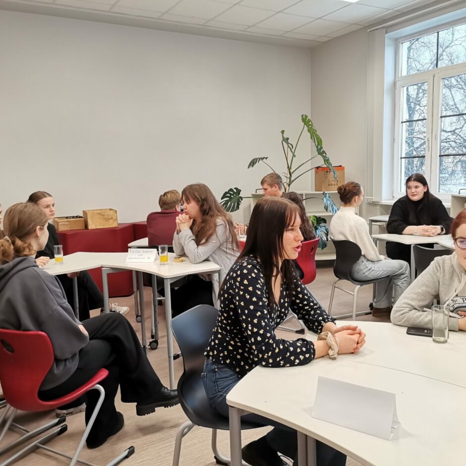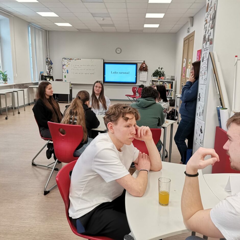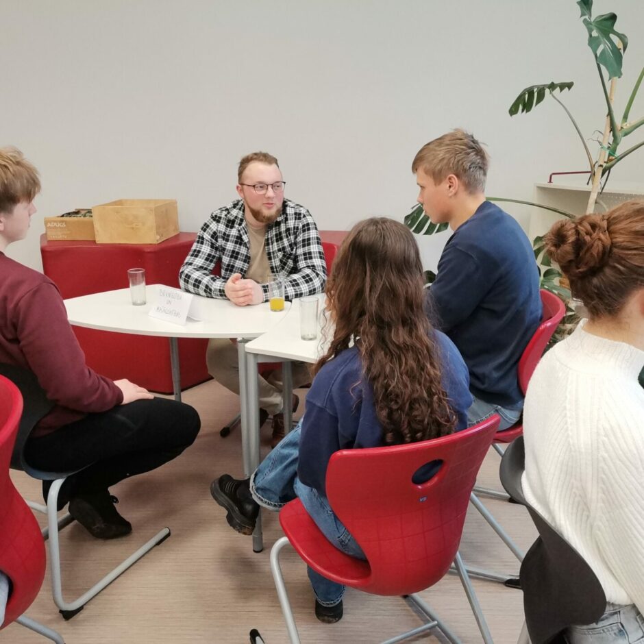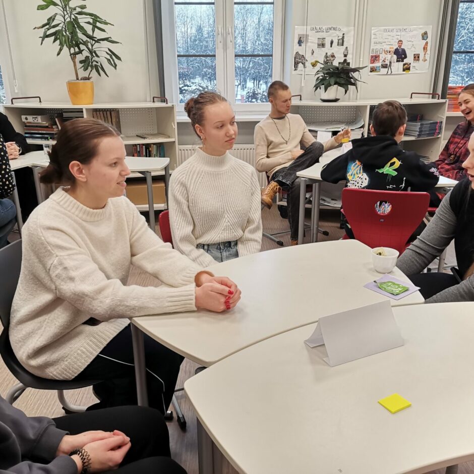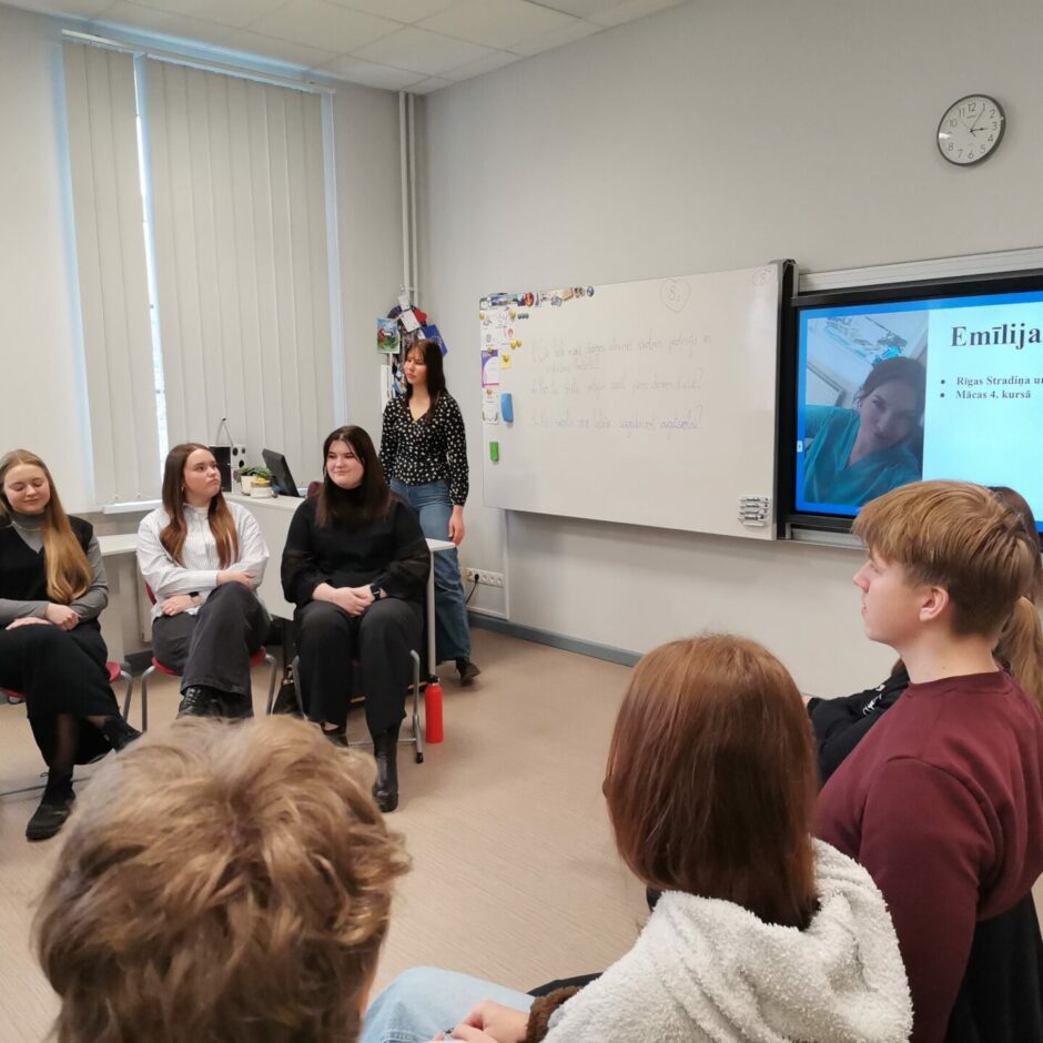 Piektdien, 7. februārī, 12. klases skolniece Evija Reiniece organizēja pasākumu “Sarunas ar absolventiem”. Pasākums noritēja ļoti pozitīvā gaisotnē, uz sarunām bija ieradušies 8 uzaicinātie absolventi: E. Krūmiņa, M. Jerums, K.Irkle, A. Siliņš, L. Ķīkule, K. Žēbina, K. Pelēce-Jeruma, L. Artemjeva, A. Students. Skolas 9.-12. klašu skolēni ļoti ieinteresēti klausījās, uzdeva jautājumus un domāja par savām nākotnes izvēlēm. Absolventiem pastāstīja par to, kā izvēlējās studiju programmas, cik liela nozīme ir bijusi iegūtajiem vērtējumiem skolā un eksāmenos iestājoties, gan mācību laikā, deva ieteikumus skolēniem izmantot augstskolu piedāvātās iespējas ēnot studentus. Paldies absolventiem par jauko pēcpusdienu!