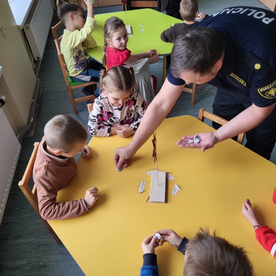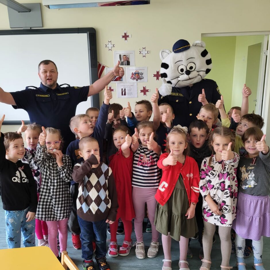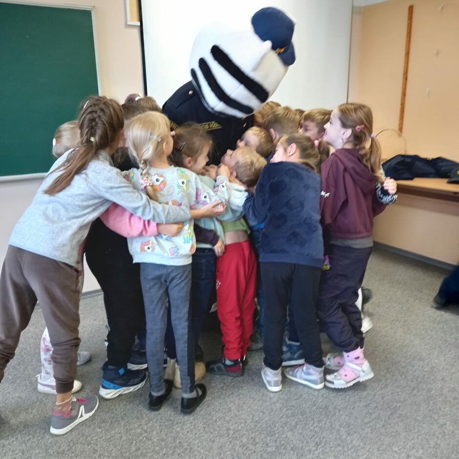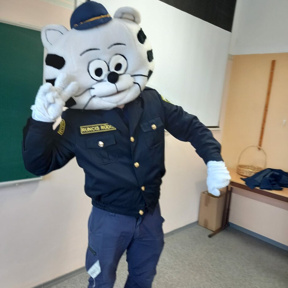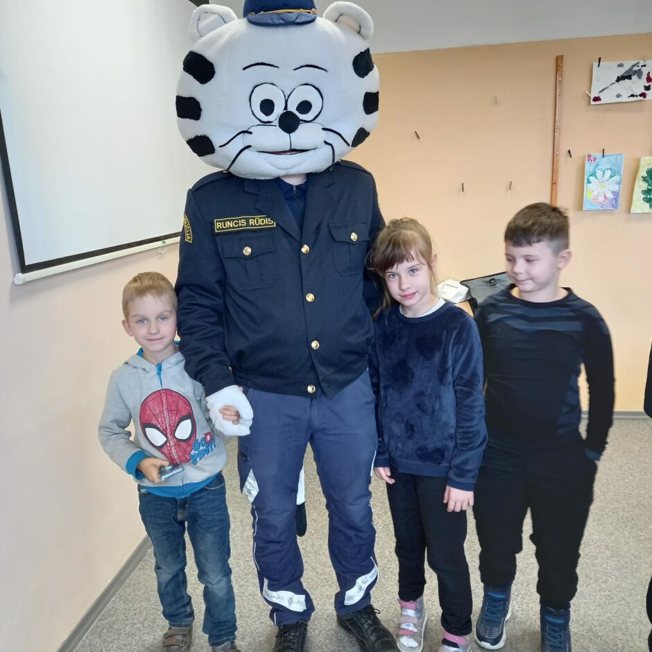 Pie Maziem ģimnāzistiem un 1.klašu skolēniem ciemojās Runcis Rūdis un Kārtības nodaļas vecākais inspektors V.Daņilovs. Policijas pārstāvji ar skolēniem runāja par drošību skolā un uz ceļa. Mazie ģimnāzisti no Runča Rūda saņēma mazas piemiņas dāvaniņas. Paldies policistiem par atbalstu un atsaucību!