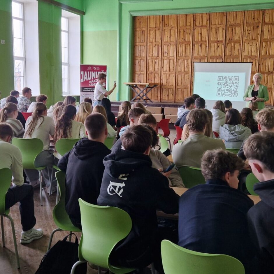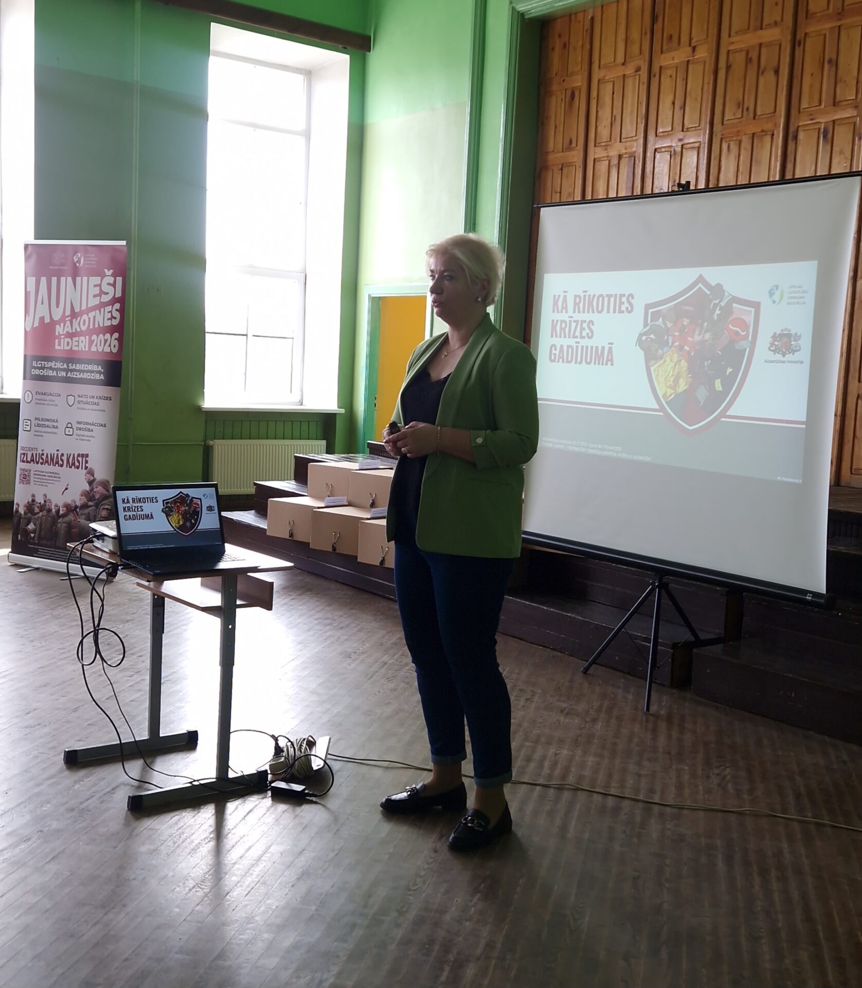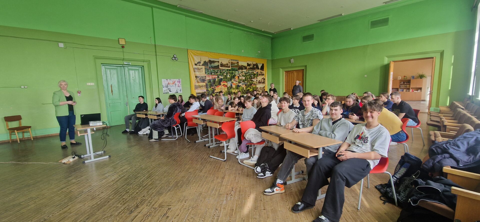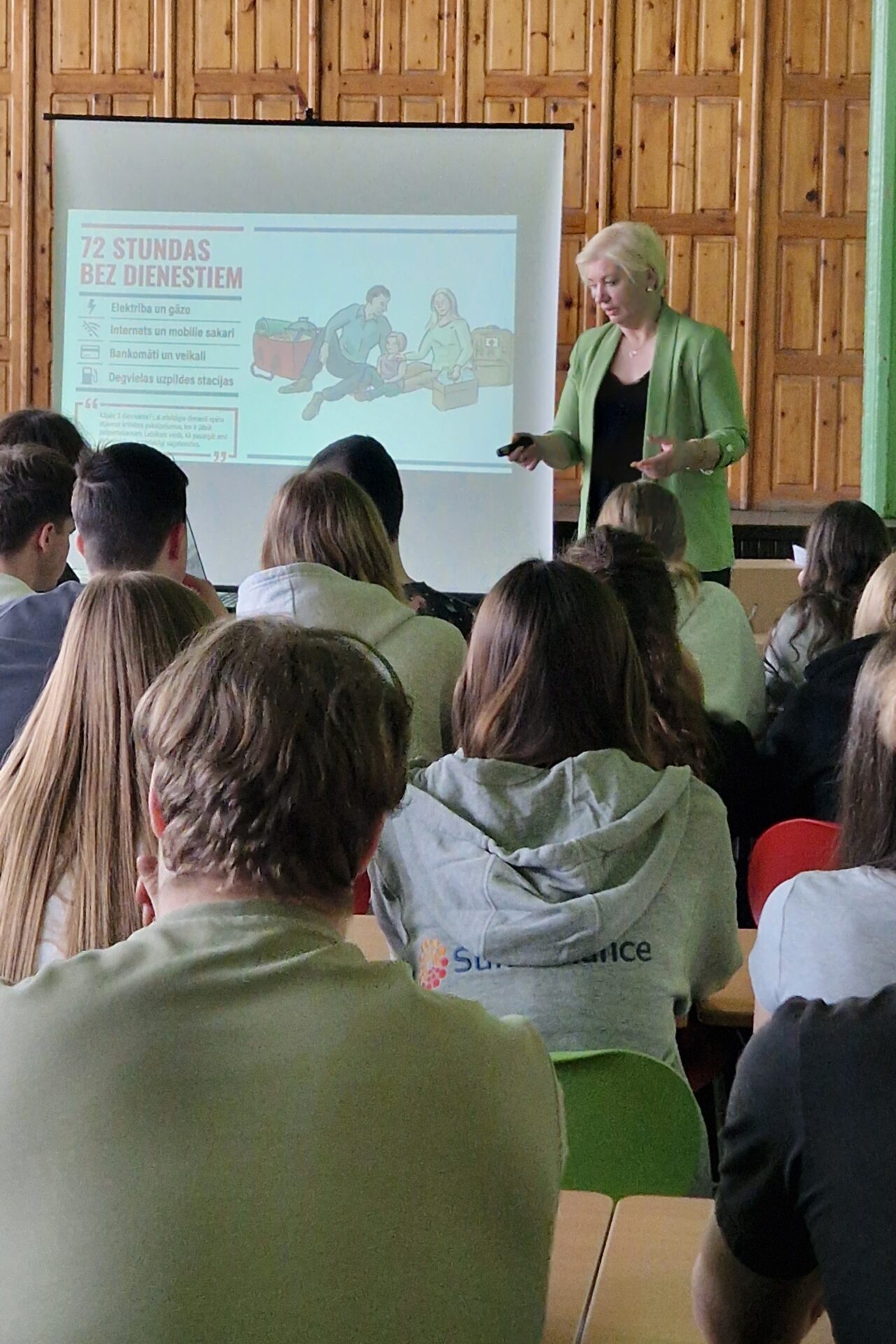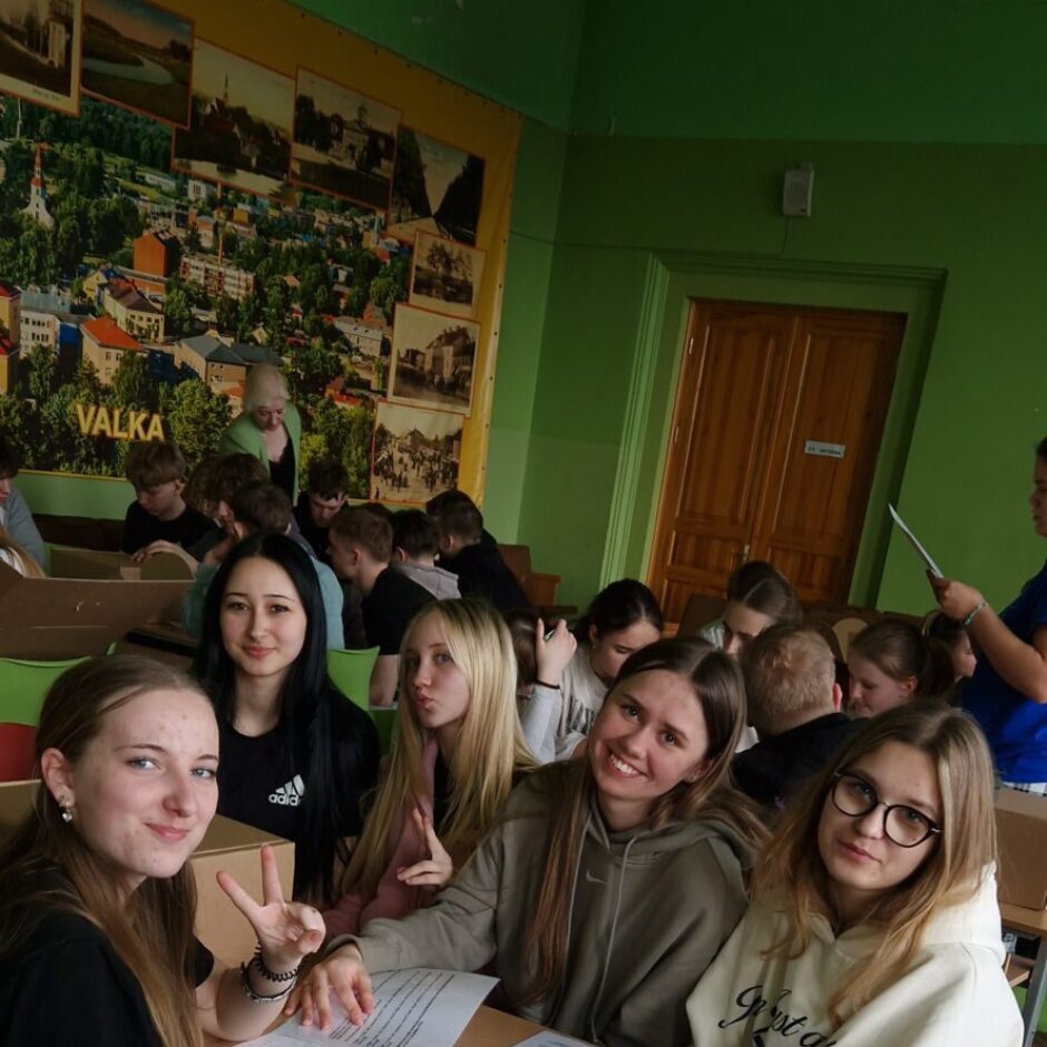 10. un 11. klašu skolēni piedalījās Jaunieši: nākotnes līderi projekta interaktīvajā spēlē “Izlaušanās kaste”. Tajā komandās tika risināti uzdevumi par dažādām aktuālām tēmām – rīcību krīzes situācijās un evakuāciju, informācijas drošību digitālajā vidē, pilsonisko līdzdalību sabiedrībā un NATO lomu valsts aizsardzībā.