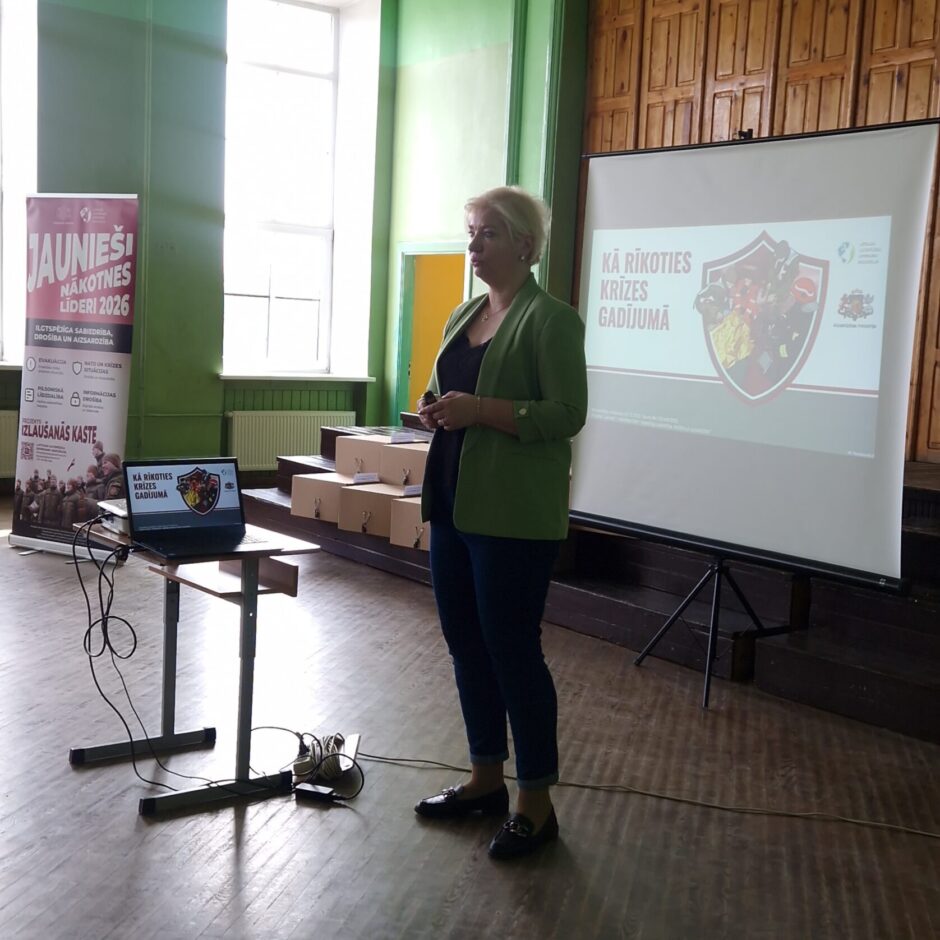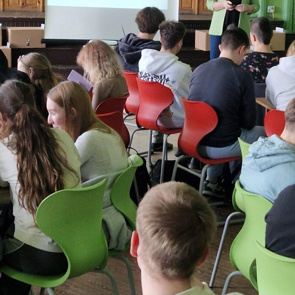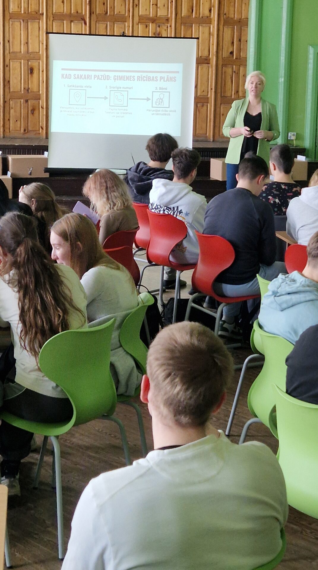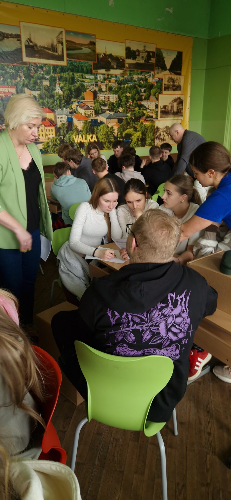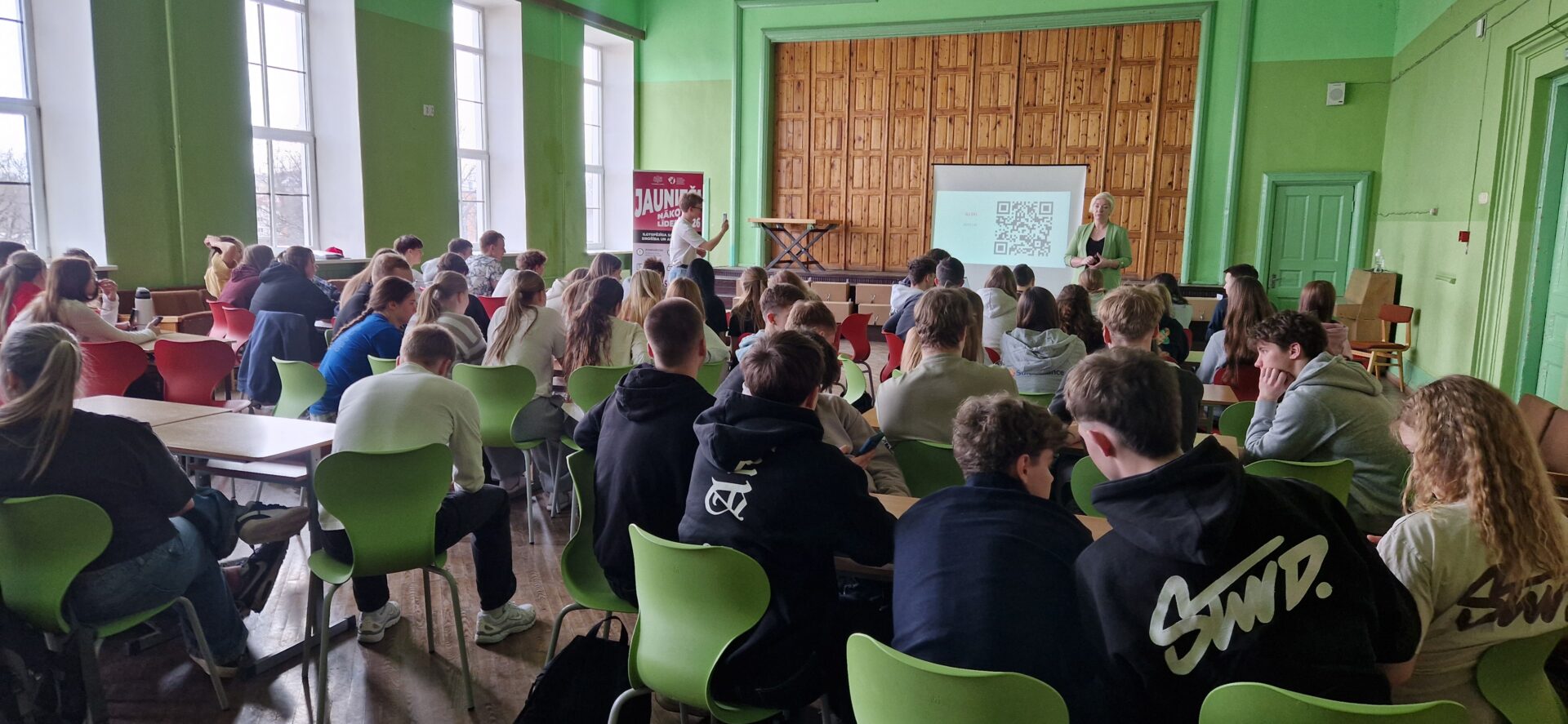 10. un 11. klašu skolēni piedalījās Jaunieši: nākotnes līderi projekta interaktīvajā spēlē “Izlaušanās kaste”. Tajā komandās tika risināti uzdevumi par dažādām aktuālām tēmām – rīcību krīzes situācijās un evakuāciju, informācijas drošību digitālajā vidē, pilsonisko līdzdalību sabiedrībā un NATO lomu valsts aizsardzībā.