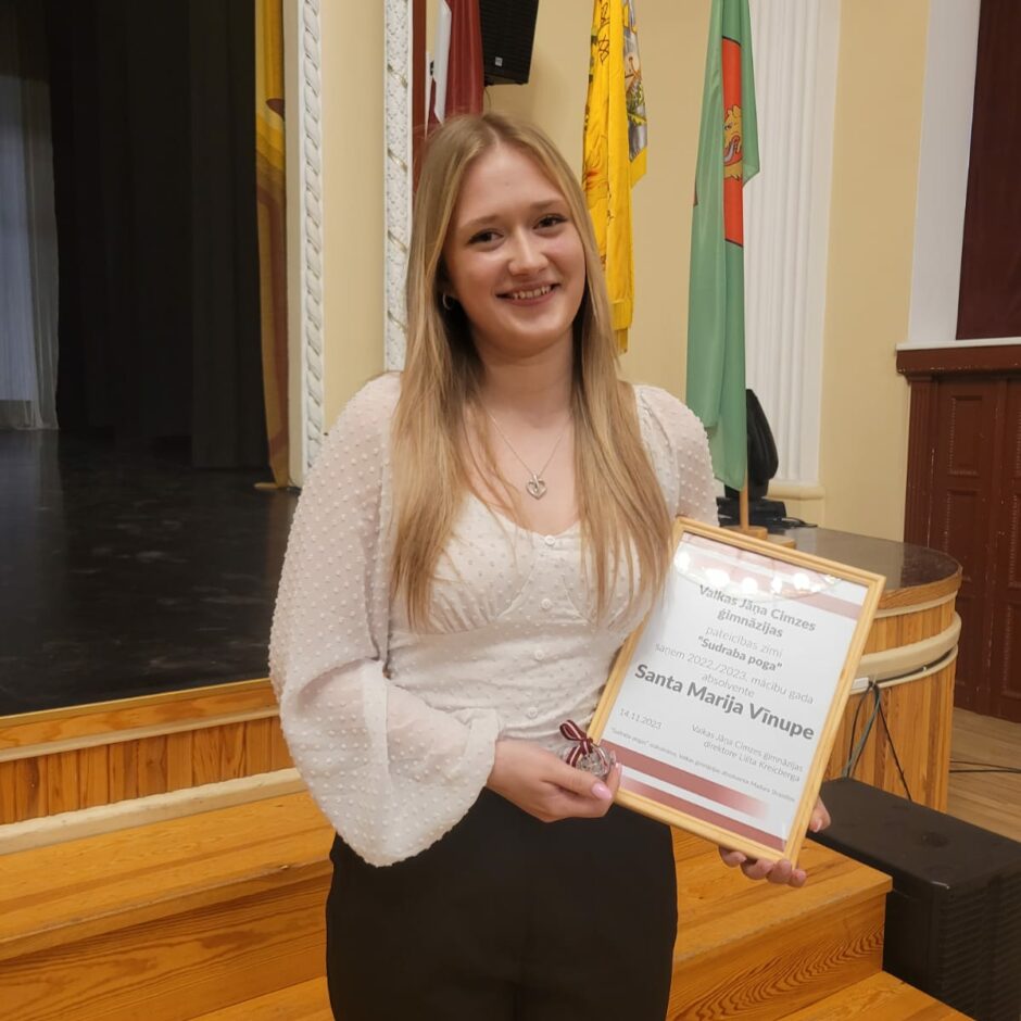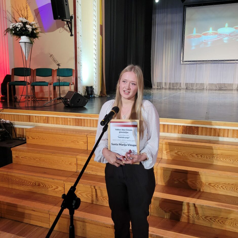 Uzstājās 7.-12.klašu jauktais koris “Cimzes kods” un 8.-12.kl. TDK “Vendīgs”.Skolēnu pašpārvalde pasniedza pateicību G.Ozoliņai un E.Petenokam par augstiem rezultātiem spēka sacensībās “Lāčplēsis un Spīdola”. Svētku pasākumā direktore L.Kreicberga pasniedza “Sudraba pogu ” S.M. Vīnupei par augstākiem rezultātiem centralizētajos eksāmenos.