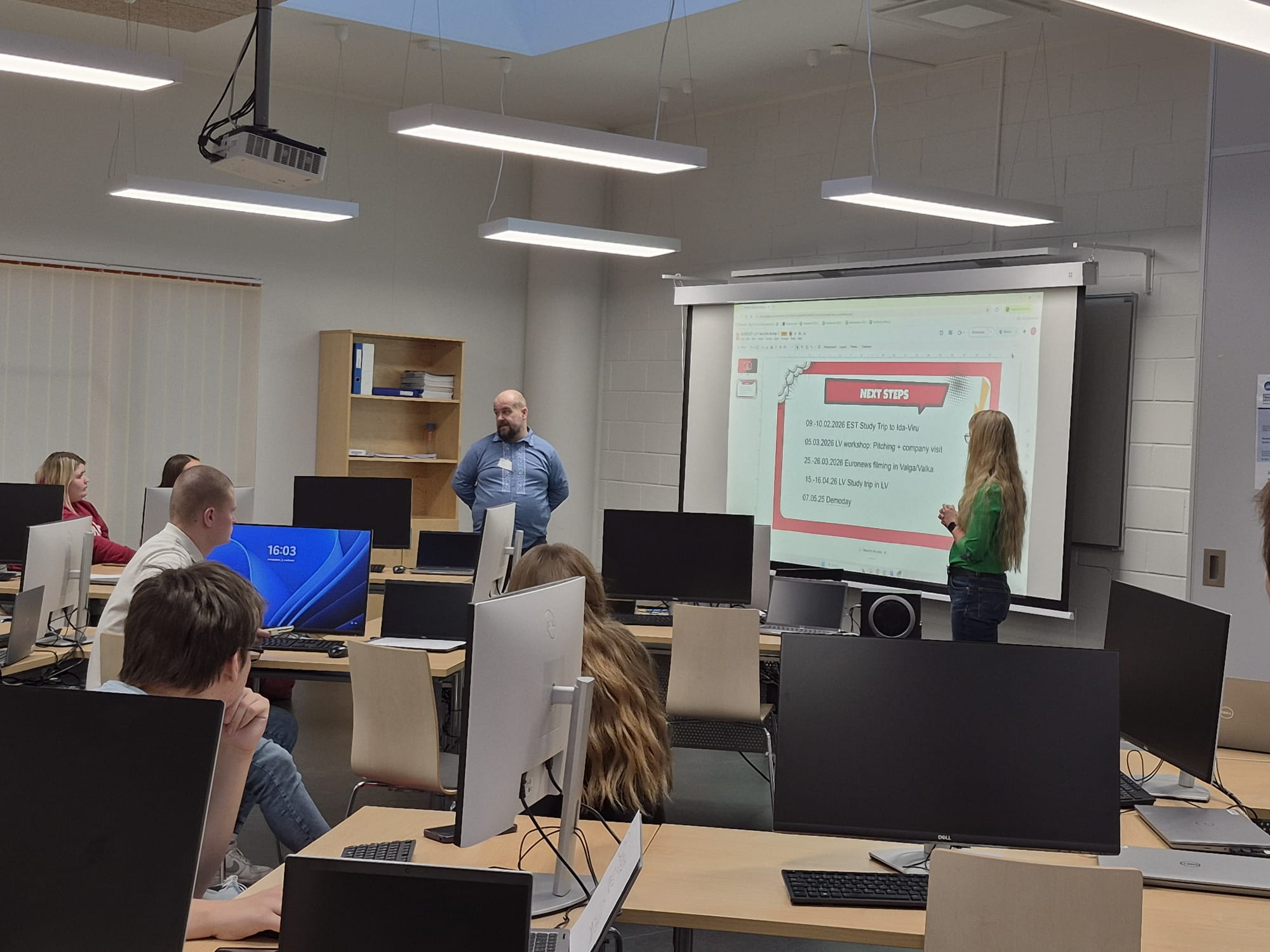 2. februārī vidusskolas uzņēmēji, kas piedalās “Hack the border” projektā, devās uz Valgas Profesionālās izglītības centru: