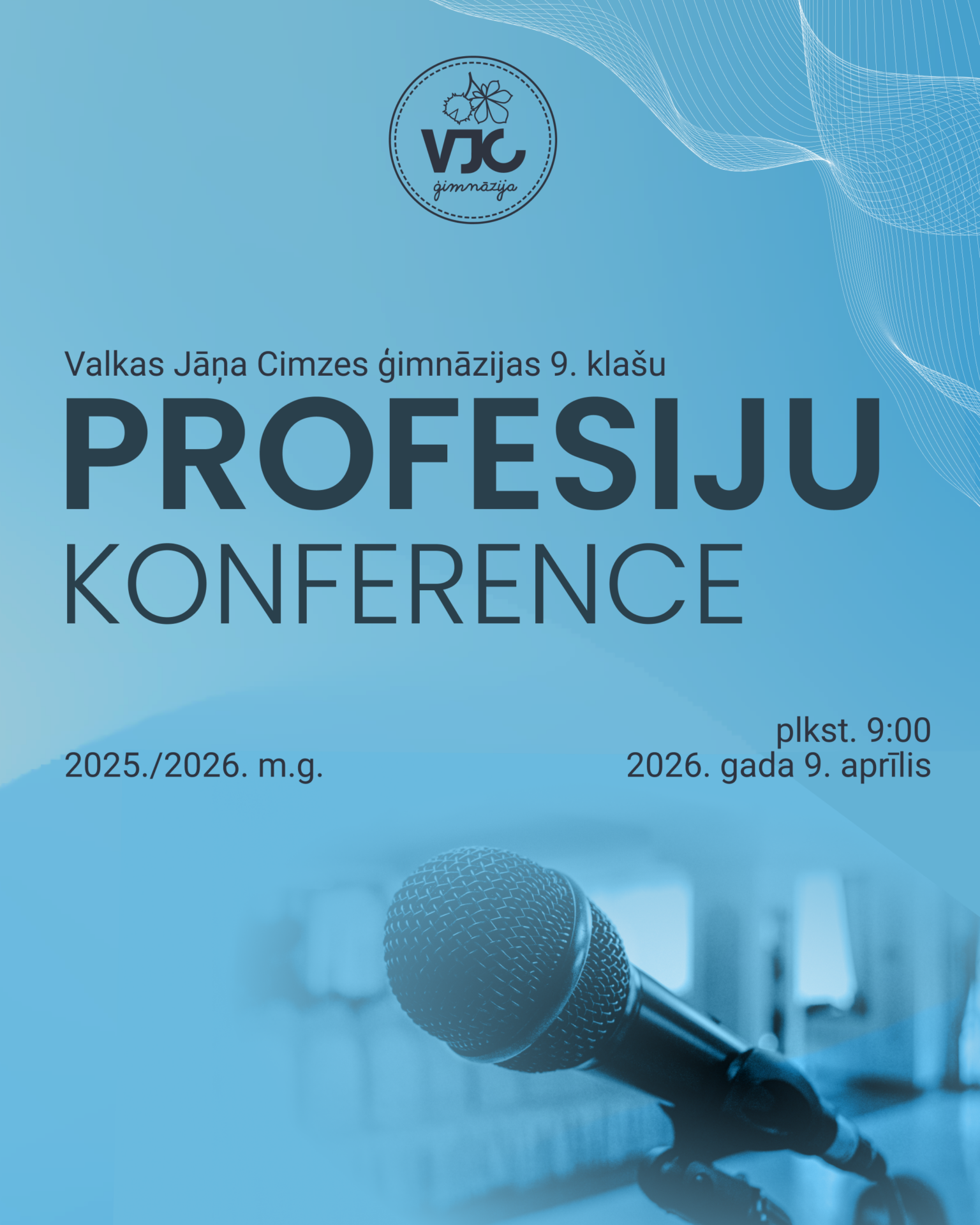 9. aprīlī, plkst. 9:00 Valkas Jāņa Cimzes ģimnāzijas aktu zālē notiks tradicionālā 9. klašu skolēnu “Profesiju konference”, kur skolēni iepazīstinās savus klasesbiedrus ar savām izvēlētajām profesijām kā arī pastāstīs par Ēnu dienā iegūto pieredzi.